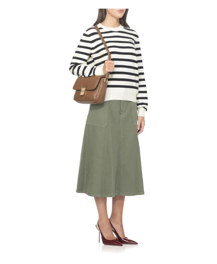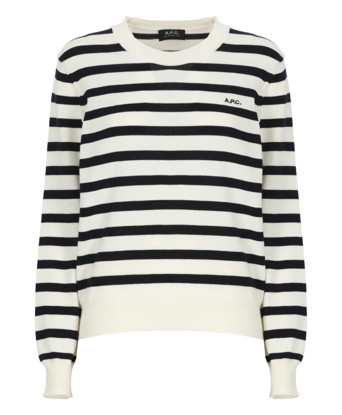 Полосатый хлопковый свитер, белый, с круглым вырезом. A.P.C., белый