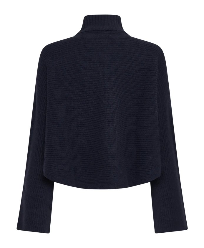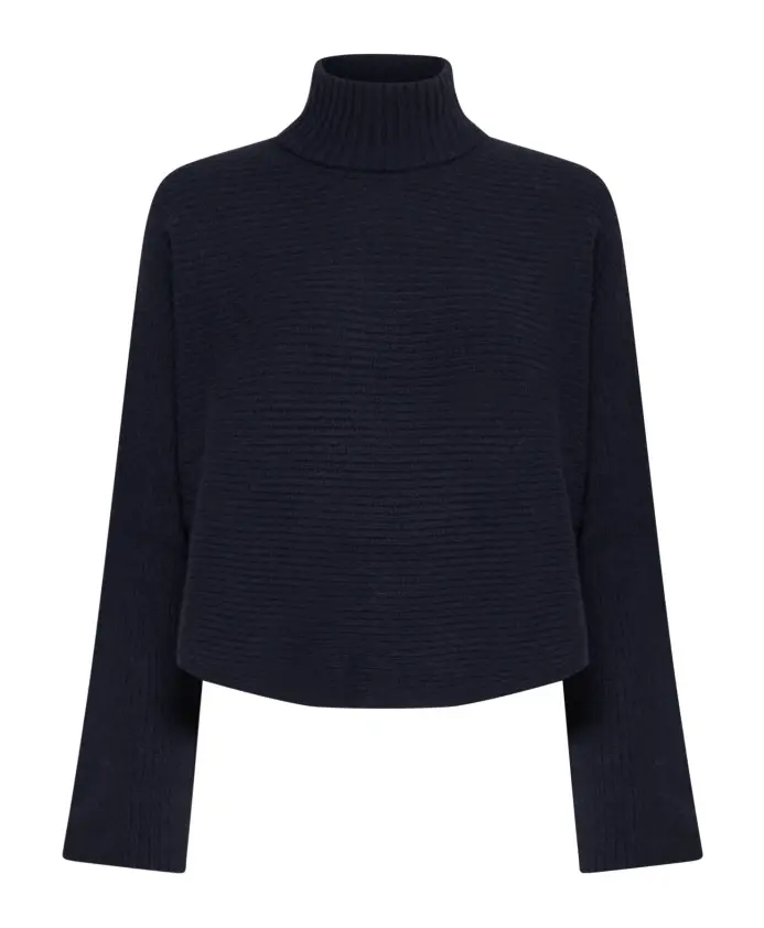 Оставайтесь в тепле и выглядите стильно в этом синем женском свитере с высоким воротником от Alysi. Изготовленный из 100% мериносовой шерсти, этот вязаный свитер идеально подходит для холодных дней.