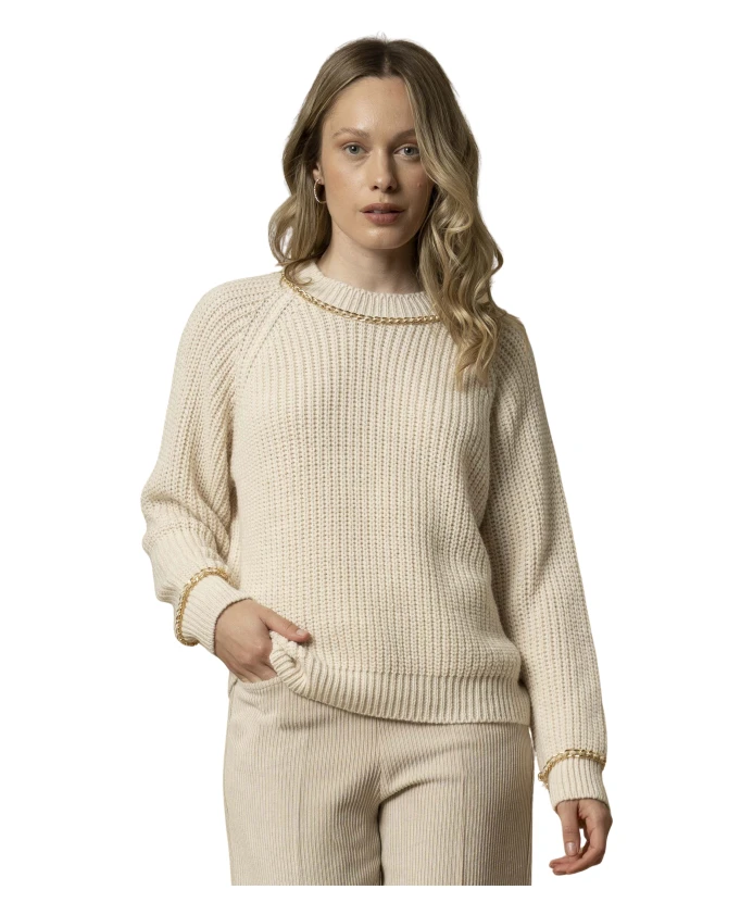 Свитер с длинными рукавами, украшенными драгоценными камнями. Kocca, белый