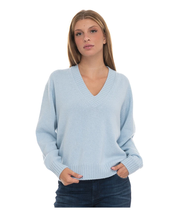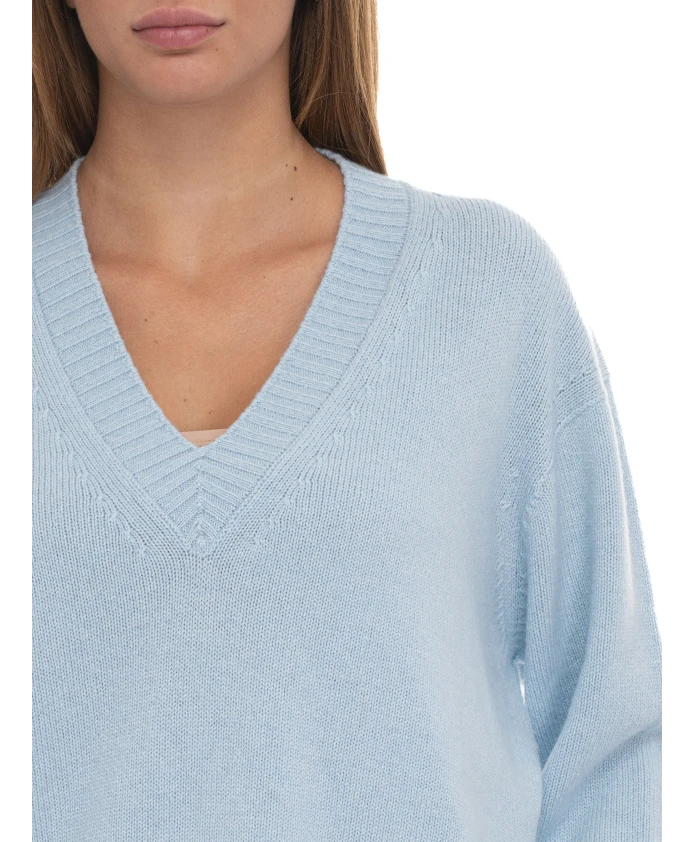Кашемировый шелковый свитер с V-образным вырезом Vanisã, синий