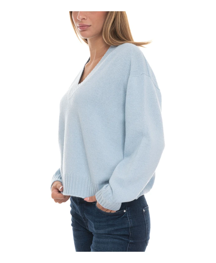 Подчеркните свой стиль свитером Vanisà Cielo. Этот вязаный свитер с V-образным вырезом, ребристыми манжетами и низом изготовлен из 70% кашемира и 30% шелка. Незаменимая вещь для модницы.