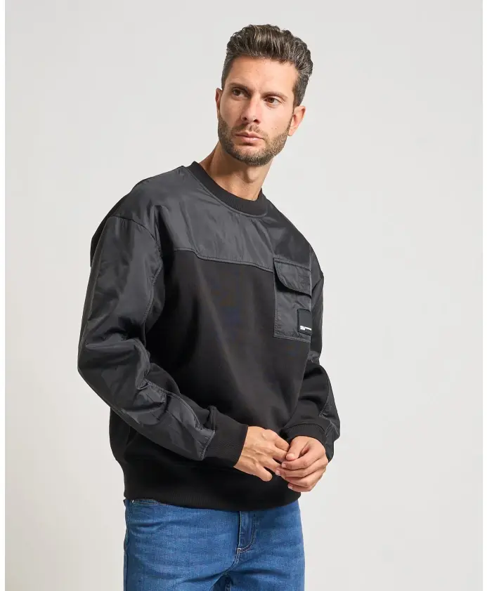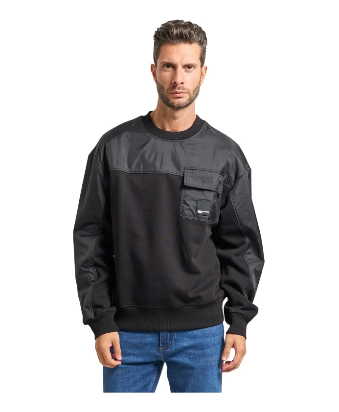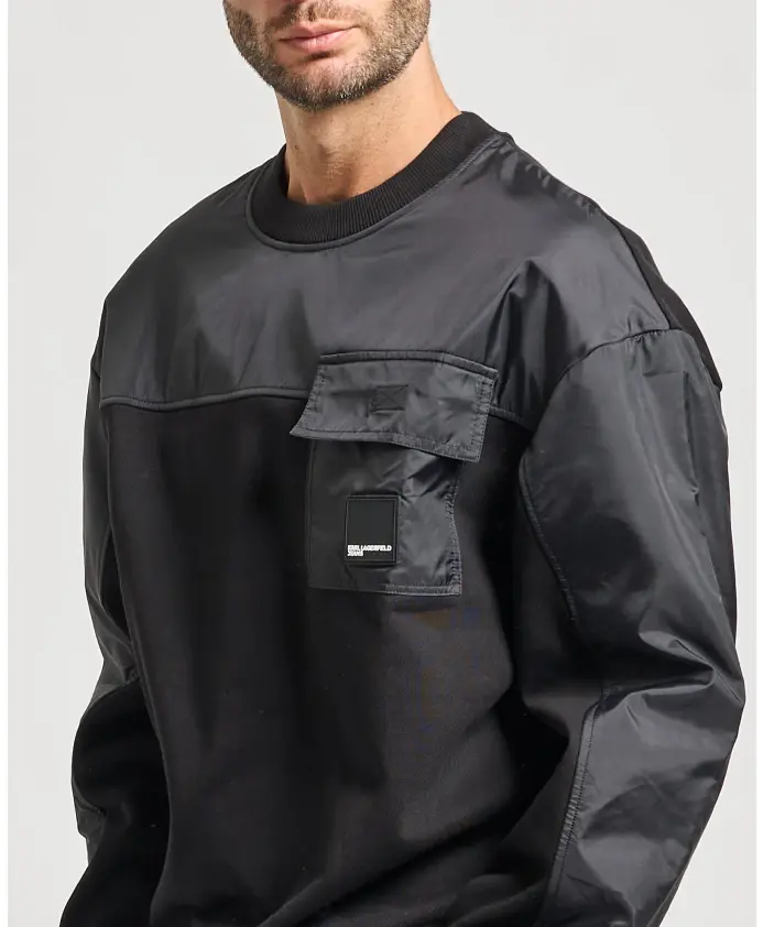 Мужская толстовка Karl Lagerfeld с двухцветным дизайном: нейлоновый корпус и рукава, подкладка из хлопкового флиса. Карман с нашивкой-логотипом спереди.