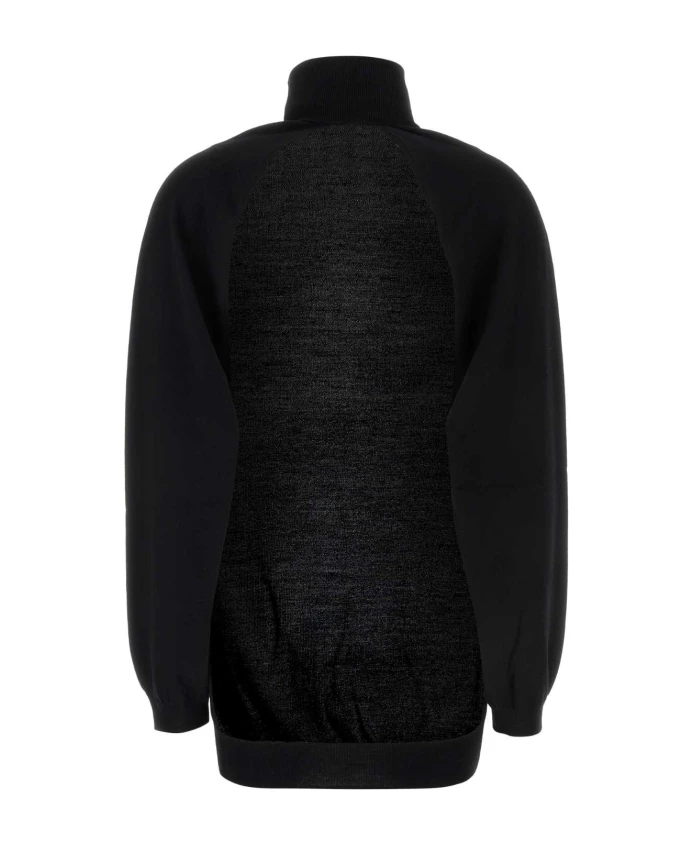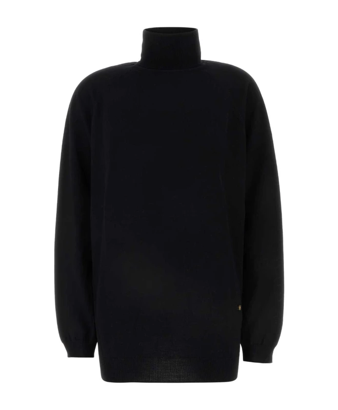 Оставайтесь в тепле и выглядите стильно в этом черном шерстяном свитере с высоким воротником от Moschino, идеально подходящем для современной женщины.