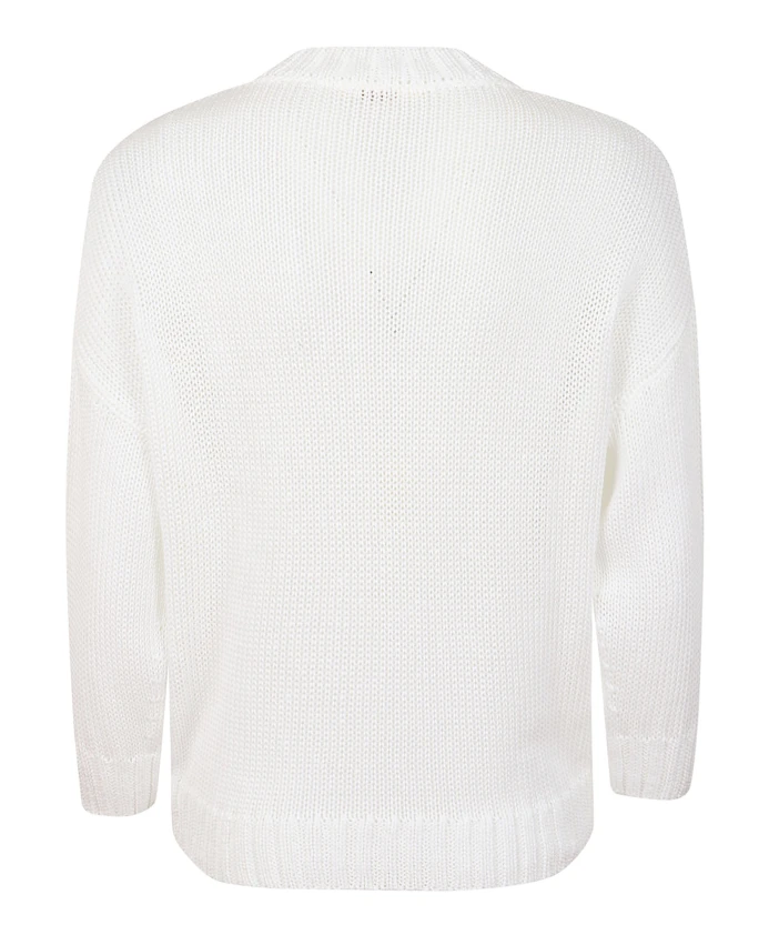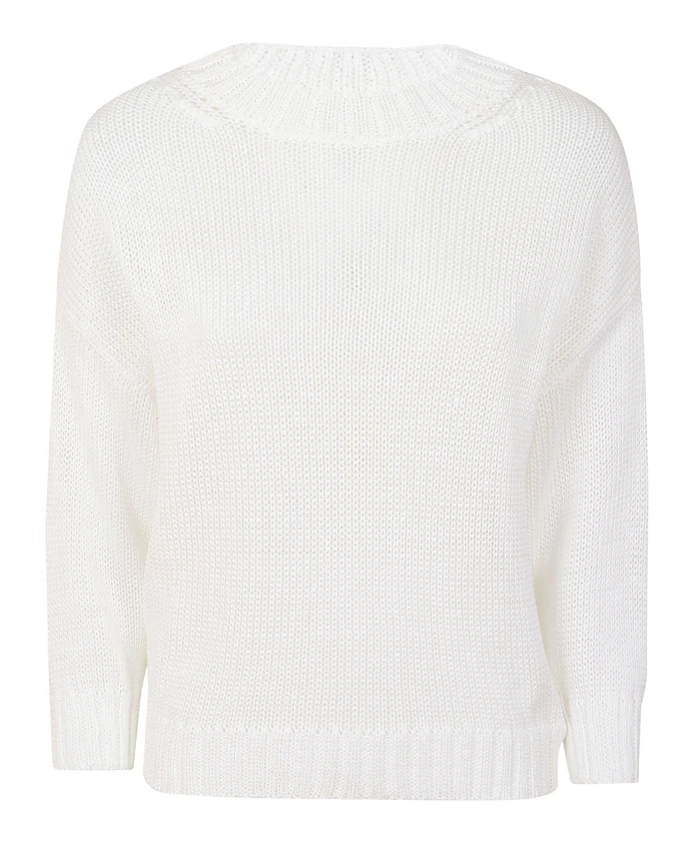Белый хлопковый вязаный свитер Zanone с круглым вырезом, ребристыми манжетами и нижним краем. 100% хлопок. Сделано в Италии.
