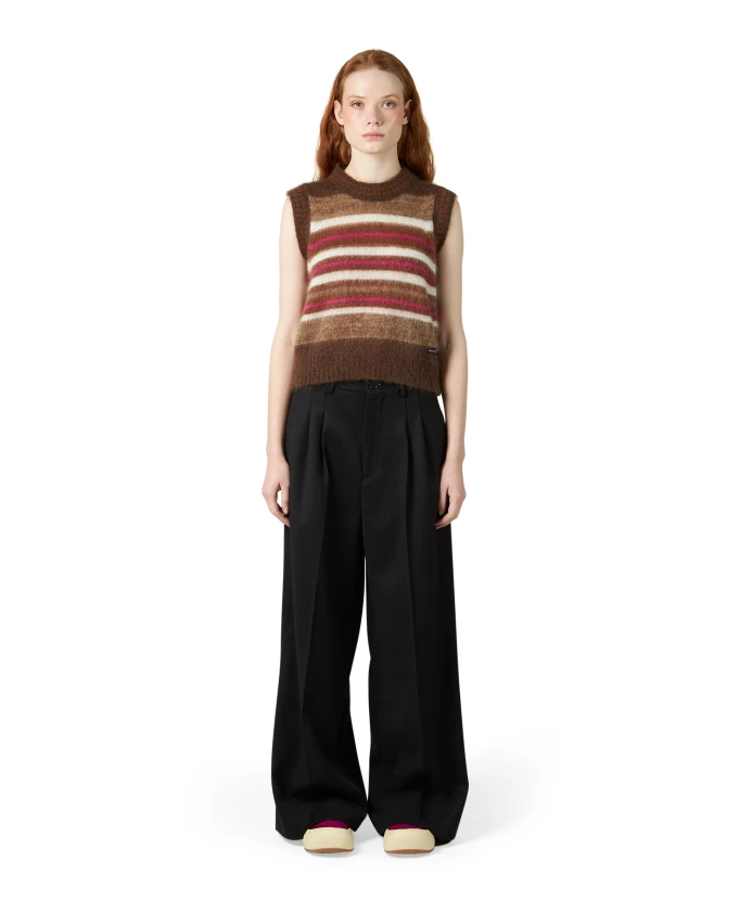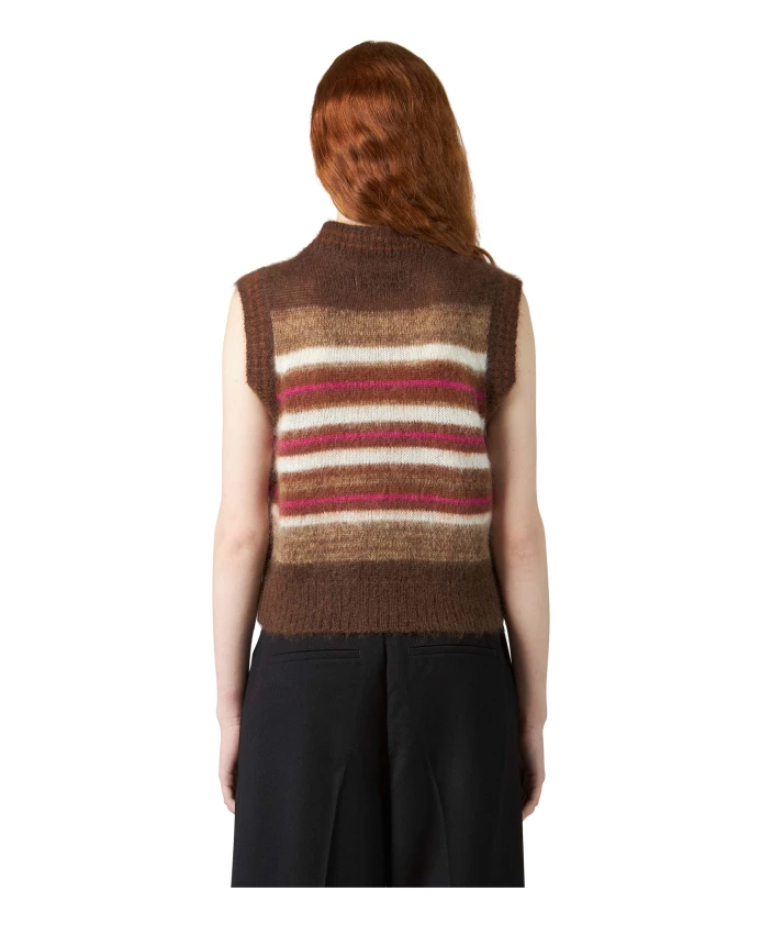 Жилет из ворсистого мохера с полосатым узором. Укороченная длина в талии. С логотипом внизу изделия.