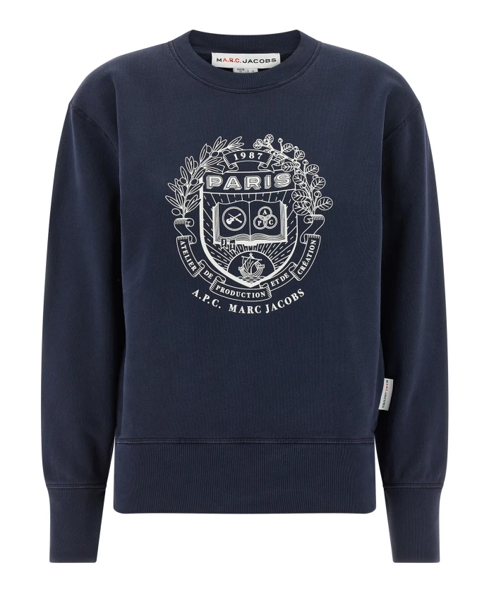 APC представляет Shrunken Paris Crewneck - легкую толстовку из хлопкового флиса из капсульной коллекции APC x Marc Jacobs. Она сочетает в себе логотип университета на передней части и слегка свободный силуэт для повседневного многослойного образа. Ключевые особенности: Темно-синий цвет | Хлопок | Легкая флисовая подкладка для легкого тепла | Ребристые манжеты | Ребристый низ | Круглый вырез | Длинные рукава с манжетами | Принт с логотипом университета на передней части | Спущенные плечи | Размеры и посадка: Прямой, слегка свободный крой | Соответствует размеру | Материал и уход: 100% хлопок | Машинная стирка в холодной воде (30°C) наизнанку.