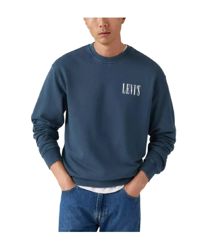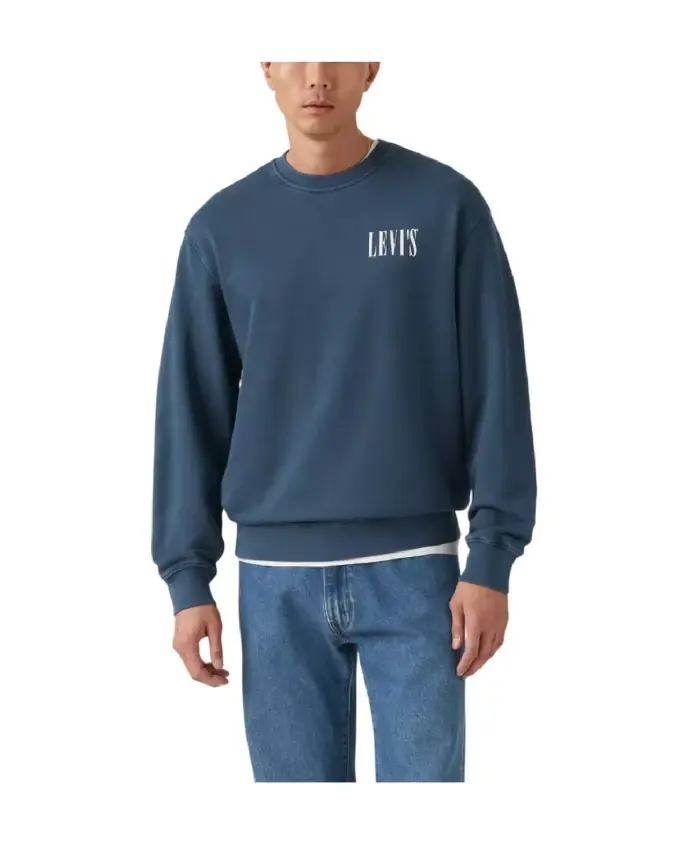 Свитшот Levi's с круглым вырезом - это простой и универсальный вариант из мягкой хлопковой ткани, созданный для комфортной повседневной носки. Ключевые особенности: Синий | Хлопковая ткань | Мягкий на ощупь | Сохраняет форму | Ребристые манжеты и нижний край | Модель без застежек | Свобода движений | Классический круглый вырез | Стандартный крой | Белый логотип, нанесенный методом трафаретной печати на груди | Размеры и посадка: Стандартный крой
