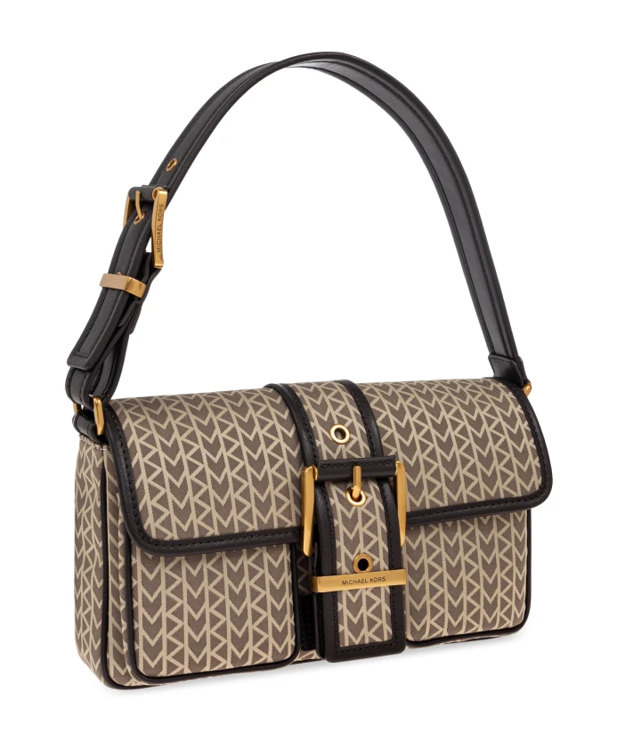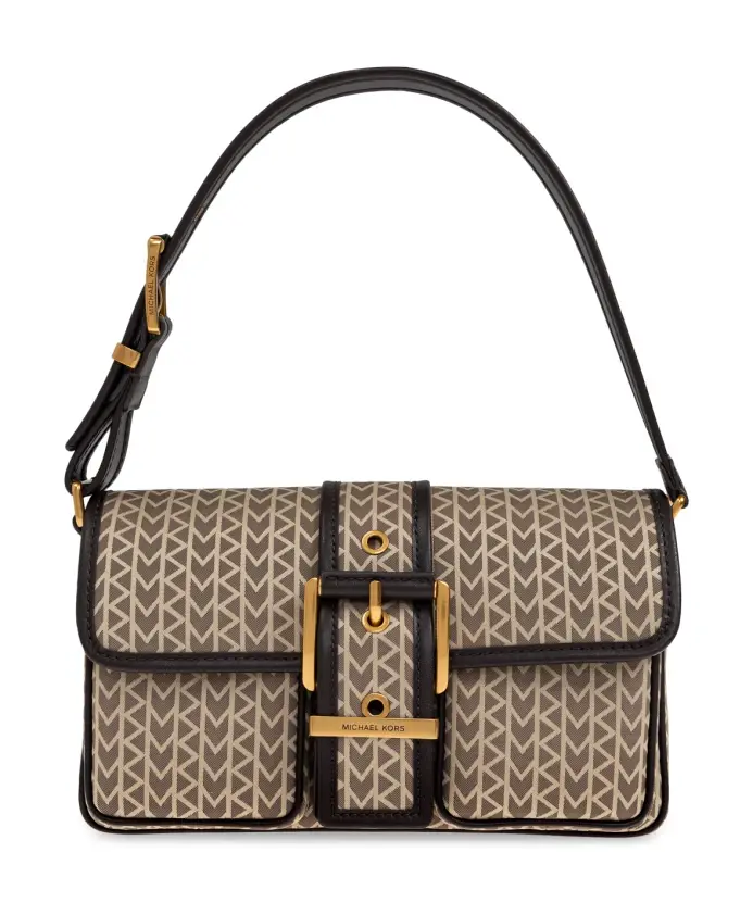 Сумка COLBY - это воплощение элегантности, сочетающее прямоугольный силуэт и прочную, структурированную конструкцию с ноткой утонченного авангарда. Верхняя часть сумки выполнена из высококачественного пластика или холста, украшенного культовым узором «гусиная лапка» - узнаваемым фирменным мотивом - покрывающим всю поверхность в коричневых и бежевых оттенках. Отделка из темно-коричневой кожи и эффектная золотая пряжка с элегантными заклепками подчеркивают роскошный характер изделия. В центре сумки - широкий кожаный ремешок с горизонтальной металлической пластиной, на которой выгравирован золотой логотип MICHAEL KORS, символизирующий мировое мастерство и утонченную элегантность. Регулируемый плечевой ремень обеспечивает идеальную индивидуальную посадку, делая сумку практичным и одновременно потрясающим аксессуаром. ПОЧЕМУ СТОИТ КУПИТЬ ЭТОТ ИЗДЕЛИЕ? * Знаменитый узор «гусиная лапка» подчеркивает уникальный характер сумки. * Кожаная отделка гарантирует долговечность и изысканный стиль. * Изысканные детали, такие как золотая пряжка и выгравированный логотип, демонстрируют высочайший уровень мастерства. * Прочная конструкция обеспечивает идеальную форму и комфорт при ношении. * Гибкая регулировка ремней позволяет настроить сумку под ваши индивидуальные потребности. Высота: 14 см. Ширина в самой широкой точке: 26 см. Ширина основания: 5 см. Размеры модели: Рост: 176 см. Грудь: 85 см. Талия: 60 см. Бедра: 89 см.