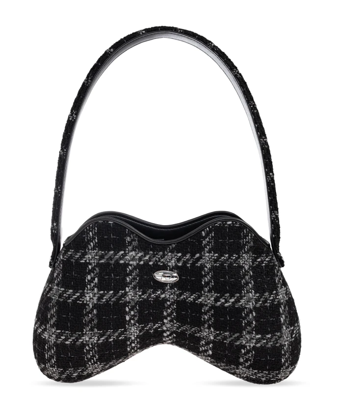 Сумка через плечо 'PLAY DOUBLE-D' из эксклюзивной коллекции Diesel очаровывает своим изысканным, волнообразным силуэтом, вдохновленным тонкими ретро-мотивами. Ее характерная форма, определяемая закругленными асимметричными линиями, подчеркивает уникальное видение бренда и придает аксессуару современный вид. Изготовленная из богато текстурированного материала, такого как твид или букле, сумка предлагает эффектную, роскошную отделку, отвечающую самым высоким стандартам в индустрии моды. Передняя часть украшена классическим широким черно-серым клетчатым узором, подчеркивающим как вневременной, так и смелый характер дизайна. Овальный металлический логотип с тонкой гравировкой завершает образ, добавляя нотку престижа и аутентичности. Внимание к деталям и тщательно выполненная строчка, а также удобный ремешок обеспечивают как комфорт при ношении, так и вневременную элегантность. ПОЧЕМУ СТОИТ КУПИТЬ ЭТОТ ТОВАР? * Эффектный, оригинальный силуэт, привлекающий внимание * Роскошная текстура ткани, вдохновленная классическими моделями * Контрастный клетчатый узор - идеально подходит для любого случая * Престижный логотип, подтверждающий подлинность и репутацию Diesel * Безупречное качество и мастерство исполнения Высота: 25 см Ширина: 35 см Размеры модели Рост: 176 см Обхват груди: 85 см Обхват талии: 60 см Обхват бедер: 89 см