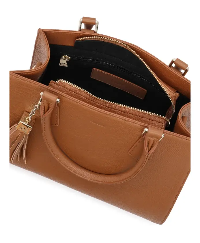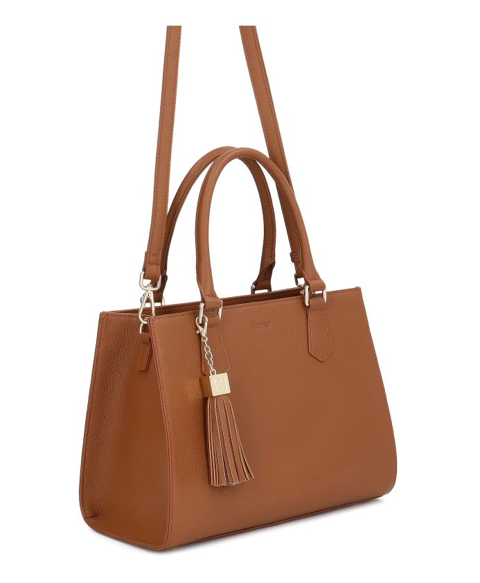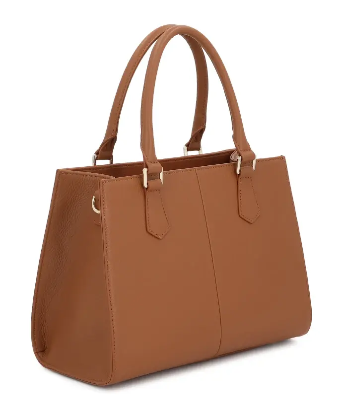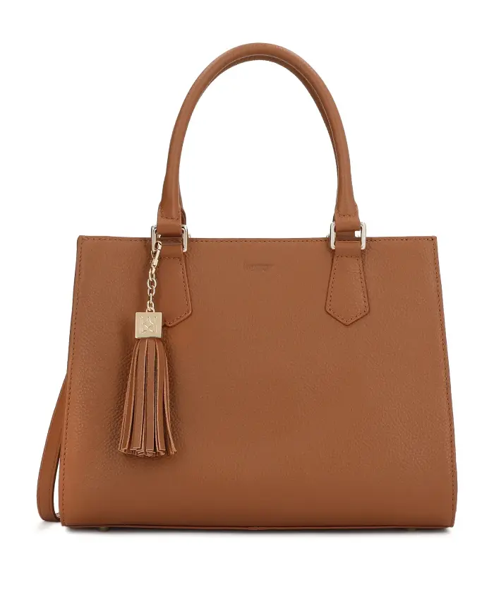 Сумка Kazar Belissy - это вневременная сумка из светло-коричневой кожи, сочетающая классический стиль и практичную организацию пространства. Она оснащена двумя ручками для переноски, съемным регулируемым плечевым ремнем и декоративным брелоком для ключей, что делает ее универсальной для повседневного использования. Основные характеристики: Светло-коричневый цвет | Зернистая кожа | Двойные ручки для переноски | Съемный регулируемый плечевой ремень | Основное отделение на молнии | Внутри: 1 открытый карман и 1 карман на молнии | Съемный декоративный брелок для ключей | Металлические ножки для защиты основания | Гладкая кожаная отделка | Фурнитура золотистого цвета | Декоративный брелок с кисточкой | Классический силуэт | Размеры и посадка: Длина: 29 см | Высота: 22 см | Ширина: 14,5 см | Высота ручки: 15 см | Длина ремня: 67-131 см | Состав и уход: Натуральная кожа | Протирать влажной тканью; для сильных загрязнений использовать мягкую чистящую пену. После чистки нанести подходящий кондиционер для кожи. Избегать использования полиролей на основе растворителей и точечной чистки. Хранить вдали от источников тепла и влаги. Рассмотрите возможность регулярной гидроизоляции.