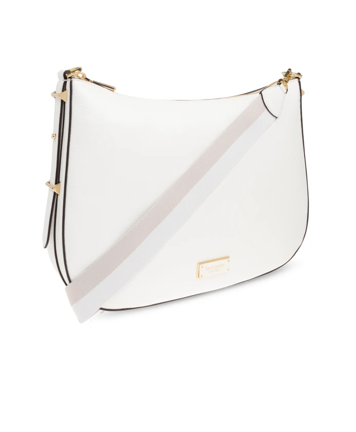 Представляем сумку через плечо из эксклюзивной коллекции KATE SPADE, сочетающую в себе элегантность и функциональность. Ее стильная округлая форма и преобладающий белый цвет подчеркивают ее вневременной характер, делая ее идеальным аксессуаром как для повседневной носки, так и для торжественных случаев. Изготовленная из высококачественной кожи, сумка гарантирует долговечность и роскошный вид. Регулируемый ремешок белого и серого оттенков позволяет подобрать индивидуальный стиль ношения. Золотистая логотипная пластинка и фурнитура золотистого цвета добавляют элегантности, а внутреннее отделение на молнии с дополнительными карманами повышает практичность. ПОЧЕМУ СТОИТ КУПИТЬ ЭТОТ ТОВАР? * Элегантный дизайн с плавно закругленными краями. * Высококачественная кожа гарантирует долговечность. * Практичный размер с просторным основным отделением и дополнительными карманами. * Золотистые детали и логотип дизайнера добавляют шика. * Регулируемый ремешок позволяет носить сумку различными способами. Высота: 26 см. Ширина в самой широкой точке: 34 см. Ширина основания: 7 см. Размеры модели: Рост: 176 см. Обхват груди: 85 см. Обхват талии: 60 см. Обхват бедер: 89 см.