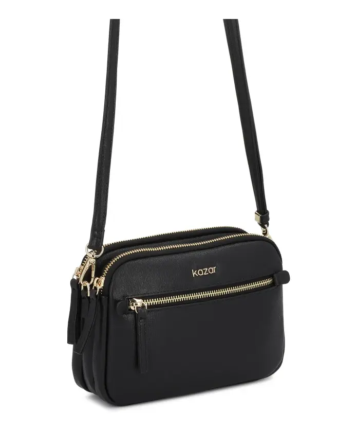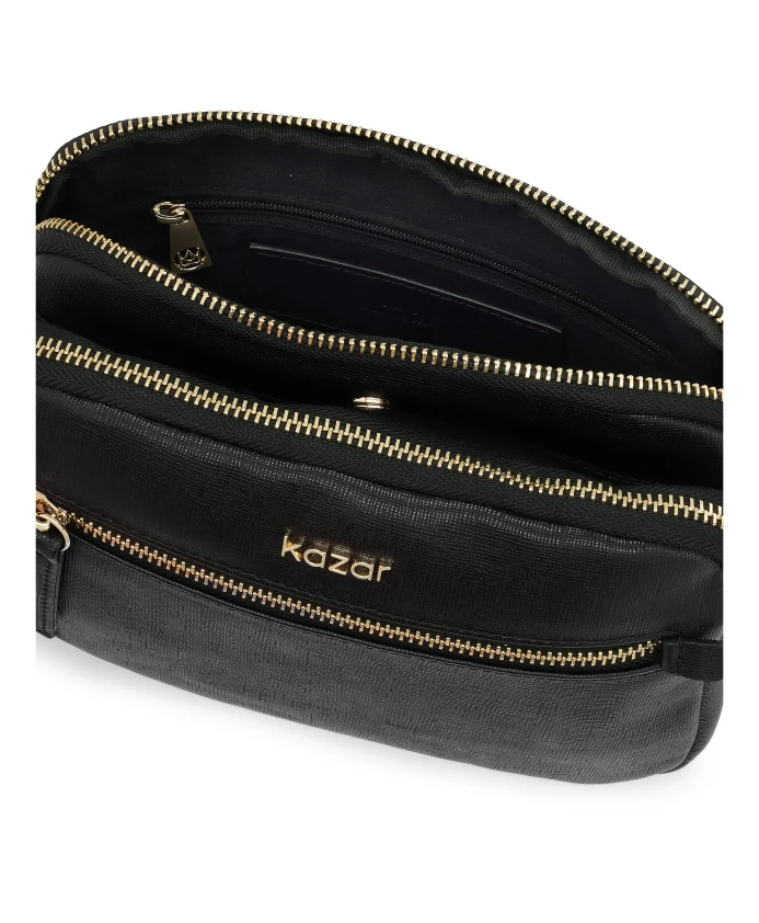 Сумка Kazar RITA - это компактная кожаная сумка через плечо, предназначенная для повседневного использования и вечерних выходов, предлагающая удобное хранение в трех практичных отделениях. Ключевые особенности: Черный цвет | Натуральная кожа | Надежная застежка-молния | Регулируемый ремешок | Съемный ремешок | Три отделения (2 на молнии, 1 на магнитной застежке) | Передний карман на молнии | Внутри: 2 открытых кармана и 1 карман на молнии | Компактный силуэт | Элегантная, вневременная отделка | Фурнитура золотистого цвета | Размеры и посадка: Длина: 22 см | Высота: 16 см | Ширина: 8,5 см | Длина ремешка (мин.): 87 см | Длина ремешка (макс.): 158 см | Состав и уход: Натуральная кожа | Чистить влажной тканью; при сильных загрязнениях использовать мягкую чистящую пену. После чистки нанесите подходящий кондиционер для кожи или защитное средство и отполируйте мягкой тканью. Избегайте быстродействующих полиролей на основе растворителей. Перед первым использованием обработайте водоотталкивающим средством и регулярно обновляйте обработку.