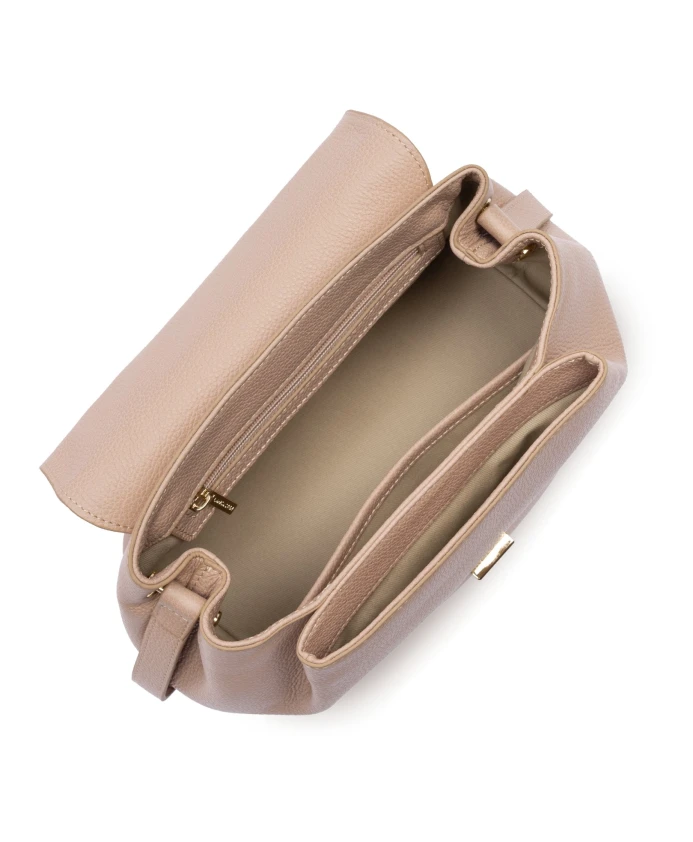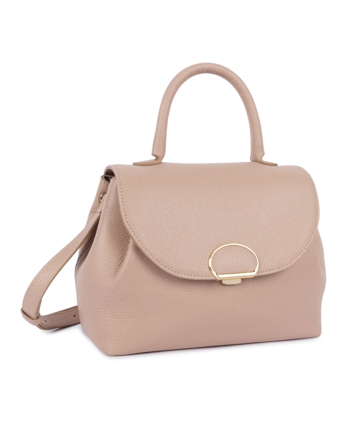 Сумка Lancaster Milano Pia - это компактная сумка через плечо, изготовленная из зернистой кожи с фирменным клапаном и застежкой в форме буквы М. Она предлагает удобное хранение вещей в небольшом, универсальном силуэте для повседневного использования. Ключевые особенности: телесный цвет | Зернистая коровья кожа | Клапан с металлической застежкой | Регулируемый, съемный плечевой ремень | Короткие, прочные ручки для переноски | Внешний и внутренний карманы на молнии | Одно основное отделение с внутренним карманом | Отделка из зернистой коровьей кожи | Металлическая застежка в форме буквы М на переднем клапане | Блестящая металлическая фурнитура золотистого цвета | Компактный прямоугольный силуэт | Размеры и посадка: 24 x 19 x 12 см (Д x В x Ш) | Можно носить на плече и через плечо (регулируемый, съемный ремень) | Предназначена для устройств до 8 дюймов | Компактный размер | Состав и уход: Кожа (внешний слой) | Хлопок (подкладка) | Металлическая фурнитура | Чистить мягкой тканью; избегать длительного воздействия воды, тепла и масел.