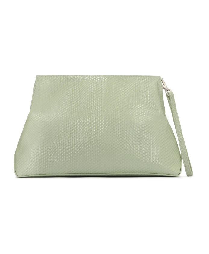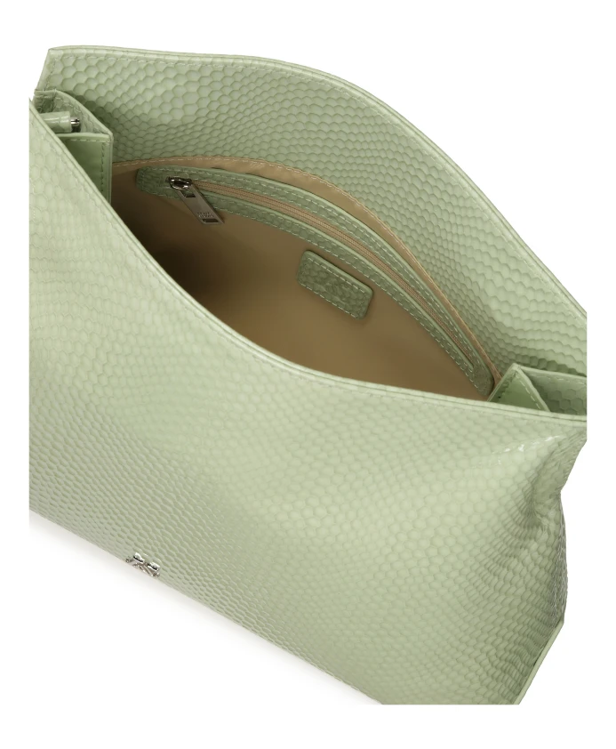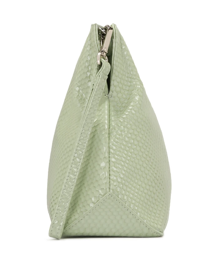 Клатч Sage, изготовленный из лакированной кожи с тиснением под змеиную кожу, - это уникальный аксессуар, впечатляющий своей утонченной элегантностью и оригинальным характером. Глянцевая отделка привлекает внимание, придавая сумке современный, роскошный вид и подчеркивая фирменный оттенок шалфейно-зеленого цвета - нежный и модный оттенок, идеально соответствующий современным трендам. Сдержанная серебряная монограмма украшает переднюю часть клатча, добавляя ему шика и гармонично контрастируя с пастельными тонами кожи. Благодаря компактному размеру клатч идеально подходит для хранения необходимых вещей, таких как телефон, ключи или косметика. Тиснение делает его идеальным аксессуаром для вечерних нарядов, но также дополняет и более повседневные образы, добавляя нотку изысканности. Это вариант для женщин, которые ценят сочетание функциональности и современного, смелого дизайна. Детали продукта: Основное отделение с магнитной застежкой. Имеет один открытый карман и один карман на молнии. Съемный ремешок для переноски.