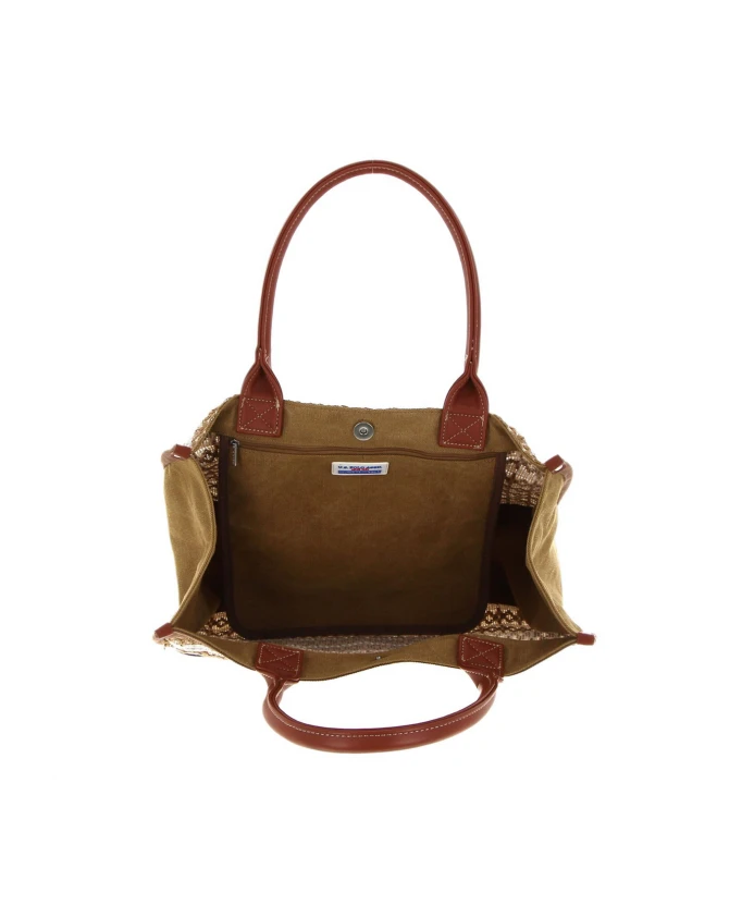 Совершайте покупки стильно с сумкой-шоппером El Dorado от US Polo Assn., созданной для сочетания функциональности и стиля в вашей повседневной жизни. Изготовленная из тканого материала с текстурированными деталями и вышитым логотипом на передней части, эта сумка отличается практичным и универсальным дизайном с горизонтальными полосами, добавляющими нотку элегантности. Она оснащена магнитной застежкой для быстрого и легкого доступа, вместительным основным отделением, внутренним карманом на молнии для мелких предметов, двумя прочными ручками из искусственной кожи и поставляется с тканевым пылезащитным мешком для защиты от пыли и влаги, когда сумка не используется. Идеально подходит для походов по магазинам, прогулок или любых мероприятий, эта сумка сочетает в себе практичность и изысканный дизайн. Размеры: 40 x 33 x 18,5 см. Состав: 90% холст, 10% полиуретан. Инструкции по уходу: протирать влажной тканью. Хранить сумку в прилагаемом тканевом чехле для защиты от пыли и влаги.