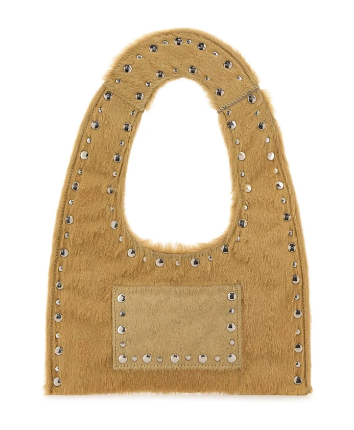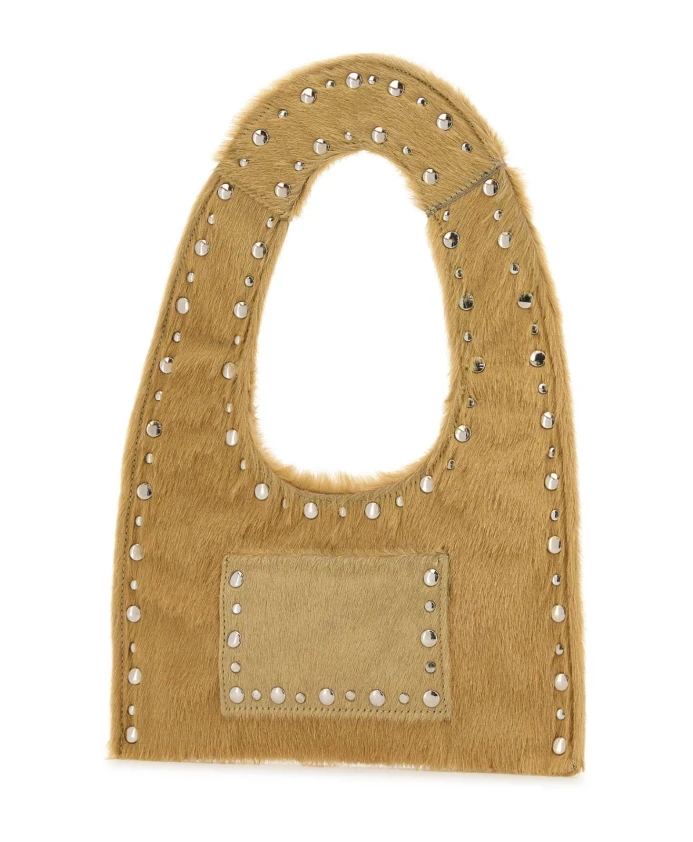 Компактная сумка Gimaguas Mini Franca Bag из телячьей кожи с декоративными заклепками, предназначенная для повседневного ношения без помощи рук. Магнитная застежка и встроенный ремешок делают ее практичным вариантом для города и мероприятий. Ключевые особенности: Бежевый цвет | Телячья кожа | Магнитная застежка | Встроенный плечевой ремень | Внутренний слот для карт | Внешний карман | Подкладка из саржи/канваса | Декоративные заклепки | Передний накладной карман | Фурнитура с логотипом на задней стороне | Плоская ручка | Размеры и посадка: Ширина: 27 см | Высота: 15 см | Глубина: 3 см | Высота ручки: 18 см | Один размер | Состав и уход: 100% кожа | Подкладка из канваса | Беречь от влаги и длительного воздействия света и тепла. Избегать контакта с маслом, парфюмерией и косметикой. Никогда не чистить водой, мылом или спиртом; чистить чистой тканью или обращаться в химчистку к специалисту по коже или замше. Когда не используется, хранить в прилагаемом фланелевом мешочке.