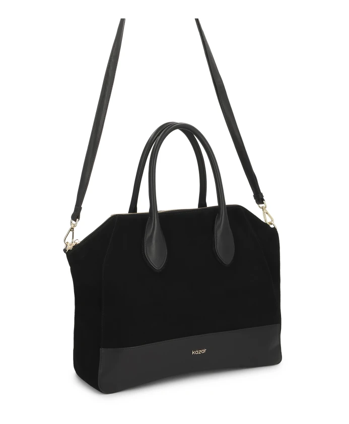 Сумка Kazar Avielle сочетает мягкую замшу и гладкую натуральную кожу, создавая элегантный современный силуэт. Предлагая два варианта ношения - две тонкие верхние ручки и регулируемый, съемный плечевой ремень - она подходит как для дневного, так и для вечернего образа. Ключевые особенности: Черный | Замша и зернистая кожа | Регулируемый, съемный плечевой ремень | Основное отделение на молнии | 1 внутренний карман на молнии | 1 внутренний открытый карман | Металлические ножки на дне | Замша с отделкой из гладкой кожи | Тонкие верхние ручки | Сдержанный логотип спереди | Современные, структурированные линии | Размеры и посадка: Длина: 35 см | Высота: 31 см | Ширина: 13,5 см | Высота ручки: 15 см | Длина ремня: 80-153 см | Состав и уход: Замша | Зернистая кожа | Протирать влажной тканью; при сильных загрязнениях нанесите мягкую чистящую пену с помощью ткани и дайте высохнуть. После чистки нанесите небольшое количество нейтрального кондиционера для кожи. Не чистить пятна.
