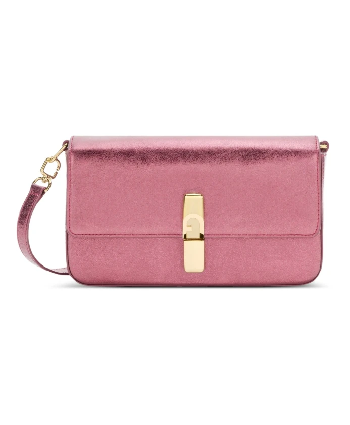 Сумка Furla Iride Crossbody S - это компактная кожаная сумка через плечо от Furla, разработанная для повседневного использования, с металлизированной текстурированной отделкой и универсальными вариантами ношения. Основные характеристики: Розовый | Розовый | Кожа Piuma из телячьей кожи с металлическим покрытием | Регулируемый, съемный плечевой ремень | Магнитная застежка с металлической фурнитурой | Внутренний карман на молнии | Компактный прямоугольный силуэт со скругленными углами | Цилиндрическая металлическая фурнитура с логотипом Furla Arch | Перфорированный логотип Furla | Текстурированная/печатная металлизированная кожа | Размеры: 24 x 13 x 6 см (Ш x В x Г) | Длина ремня мин. 105 см | Длина ремня макс. 118 см | Вес 0,56 кг | Компактный силуэт через плечо для ношения без помощи рук | Регулируемый, съемный ремень позволяет использовать различные варианты ношения | Состав и уход: 100% кожа (внешний слой) | Внутренний слой: 70% полиэстер, 30% кожа