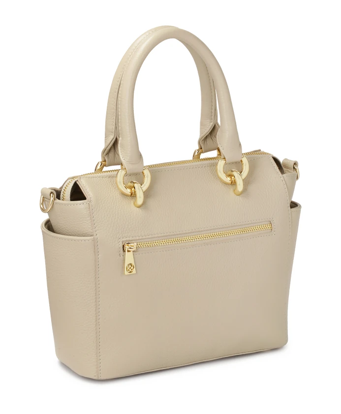 Эта повседневная сумка из натуральной кожи светло-серого цвета излучает элегантность и одновременно непринужденность. Ее простой, классический дизайн обеспечивает универсальность, делая ее идеальным аксессуаром на каждый день. Она имеет две ручки средней длины для удобного ношения в руке. Кроме того, сумка имеет длинный съемный ремешок, позволяющий носить ее на плече или через плечо. Натуральная кожа имеет тонкую текстуру, которая добавляет нотку изысканности, а светло-серый цвет нейтрален и легко дополняет различные стили. Внутреннее пространство сумки просторное, обычно с карманами для мелких предметов, что делает ее не только эстетически привлекательной, но и практичным выбором. Детали продукта: Сумка имеет одно основное отделение на молнии. В ней есть один карман на молнии и два открытых кармана. Сзади есть один карман на молнии, а по бокам - два открытых кармана. Съемный ремешок регулируется. К дну сумки прикреплены металлические ножки.