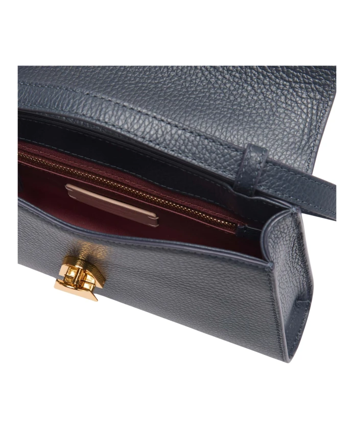 Маленькая сумка через плечо Coccinelle Dew сочетает в себе структурированный силуэт и изысканную застежку-пряжку, напоминающую медиатор. Дизайн и мягкая, зернистая кожа делают ее практичной повседневной сумкой через плечо с оригинальной застежкой. Ключевые особенности: Синий | Темно-синий | Кожа | Прочная кожа | Легко чистится | Мягкая на ощупь | Застежка-пряжка | Съемный и регулируемый плечевой ремень с застежками-кнопками | Внутренний карман на молнии | Носить в руке или через плечо | Фурнитура с золотым покрытием | Структурированный силуэт | Изогнутые, женственные линии | Клапан с перекрывающимися элементами, напоминающий медиатор | Логотип, нанесенный золотым тиснением | Размеры и посадка: 26 x 15 x 5 см | 370 г | Состав и уход: 100% коровья кожа | Подкладка: 100% хлопок | Фурнитура с золотым покрытием. Чистить мягкой влажной тканью; избегать агрессивных чистящих или дезинфицирующих средств, которые могут повредить фурнитуру.