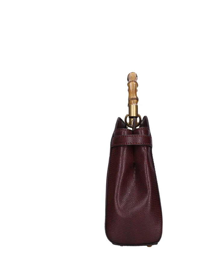 Сумка Guess Sibel с принтом под змеиную кожу сочетает в себе внешнюю отделку из искусственной кожи с принтом под змеиную кожу и бамбуковую ручку, создавая стильный аксессуар, подходящий как для дня, так и для вечера. Два отделения и съемный плечевой ремень делают ее практичным выбором для повседневной организации вещей. Ключевые особенности: Красный | Бордовый | Искусственная кожа | Два отделения | Застежка на кнопку | Регулируемый и съемный плечевой ремень | Внутренние и задние карманы на молнии | Внешняя отделка с принтом под змеиную кожу | Бамбуковая ручка | Подкладка с персонализированным логотипом | Металлическая надпись с логотипом | Размеры и посадка: Высота: 21 см | Ширина: 30 см | Глубина: 9 см | Состав материала и уход: 100% полиуретан | Не стирать. Хранить в прилагаемом пылезащитном мешке. Беречь от тепла и влаги. При попадании дождя немедленно высушить мягкой нейтральной тканью.
