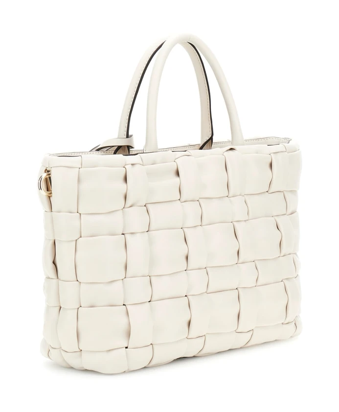 Сумка GUESS Marion сочетает в себе плетеную искусственную кожу, структурированный силуэт и фурнитуру светлого золотистого цвета. Предназначенная для повседневного ношения, она имеет верхние ручки и регулируемый, съемный плечевой ремень для универсальных вариантов ношения. Ключевые особенности: Белый | Полиуретан | Легко чистится | Регулируемый, съемный плечевой ремень | Две верхние ручки (около 35 см) | Магнитная застежка | Множество внутренних карманов | Подвеска с логотипом | Металлические ножки для защиты основания | Плетеный внешний материал | Фурнитура светлого золотистого цвета | Структурированный силуэт | Верхние ручки | Размеры и посадка: 23 x 36 x 11 см | Ручки около 35 см | Регулируемый, съемный плечевой ремень 110/130 см | Состав и уход: 100% полиуретан (внешний материал) | 100% полиэстер (подкладка) | Протирать влажной тканью; не использовать абразивные чистящие средства.