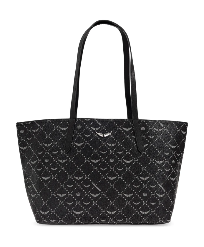 Сумка Zadig & Voltaire Z Shopper Monogram - это вместительная эффектная сумка-тоут, сочетающая в себе изысканный монограммный узор и прочную конструкцию из холста с покрытием. Созданная для повседневного использования, она удобна для ношения на плече и украшена декоративным логотипом в виде крыльев, добавляющим изысканную дизайнерскую деталь. Ключевые особенности: Черный цвет | Холст с покрытием | Прочная конструкция | Длинные двойные ручки для ношения на плече | Просторное внутреннее отделение для необходимых вещей | Внутренний карман | Геометрический монограммный принт с мотивами ромбов, крыльев и короны | Трапециевидный силуэт | Серебряный логотип в виде крыльев | Видимая зернистая текстура | Размеры и посадка: Высота: 24 см | Ширина в самой широкой точке: 46 см | Ширина основания: 16 см | Состав и уход: 67% полиуретан | 33% полиэстер