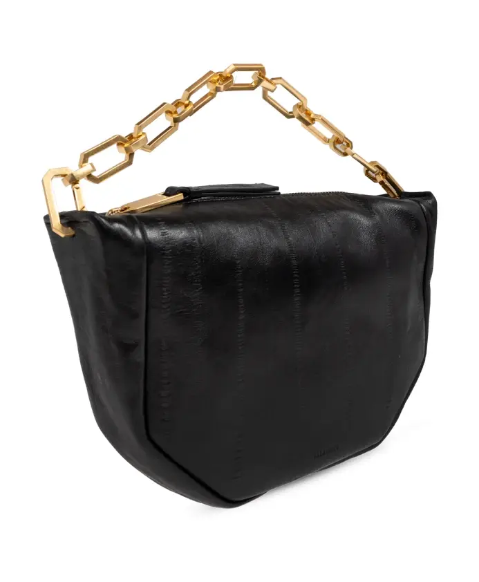 Мини-сумочка AllSaints Madea сочетает в себе геометрический, структурированный силуэт и фурнитуру, вдохновленную ювелирными изделиями, создавая изысканный аксессуар, подходящий как для дневного, так и для вечернего образа. Ключевые особенности: Черный | Кожа | Застежка-молния | Короткая верхняя ручка | Цепочка с прямоугольными звеньями | Геометрический, слегка закругленный силуэт | Расклешенное основание | Вертикальная стежка в стиле пэчворк | Структурированная форма, сохраняющая форму | Золотые детали, вдохновленные ювелирными изделиями (кубическая ручка, прямоугольные звенья цепочки) | Размеры и посадка: Высота: 17 см | Ширина в самой широкой точке: 27 см | Ширина основания: 5 см | Универсальный размер | Состав и уход: Внешняя часть: 100% овчина | Отделка: 100% коровья кожа | Подкладка: 100% хлопок | Только протирать влажной тканью.