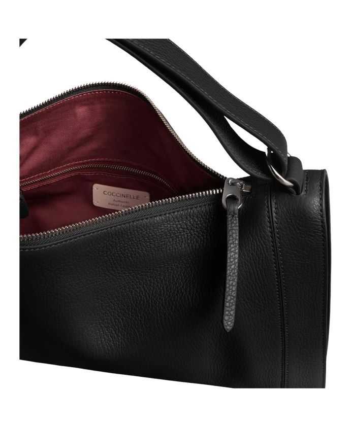 Сумка Coccinelle Elinor на плечо сочетает в себе минималистичные линии и эффектную круглую объемную пряжку. Она изготовлена из мягкой зернистой кожи и предназначена для удобного повседневного ношения на плече. Ключевые особенности: Черный | Кожа | Прочная зернистая кожа | Легко чистится | Застежка-молния | Регулируемый плечевой ремень с пряжкой | Боковой карман на молнии для быстрого доступа | Три внутренних кармана, включая один на молнии | Круглая объемная пряжка | Минималистичные, чистые линии | Металлическая надпись с логотипом | Блестящая никелированная фурнитура | Размеры и посадка: 39 x 26 x 6 см | Возможность ношения на плече | Состав и уход: 100% телячья кожа | Чистите мягкой тканью; избегайте агрессивных чистящих средств или дезинфицирующих растворов, которые могут повредить фурнитуру или кожу.