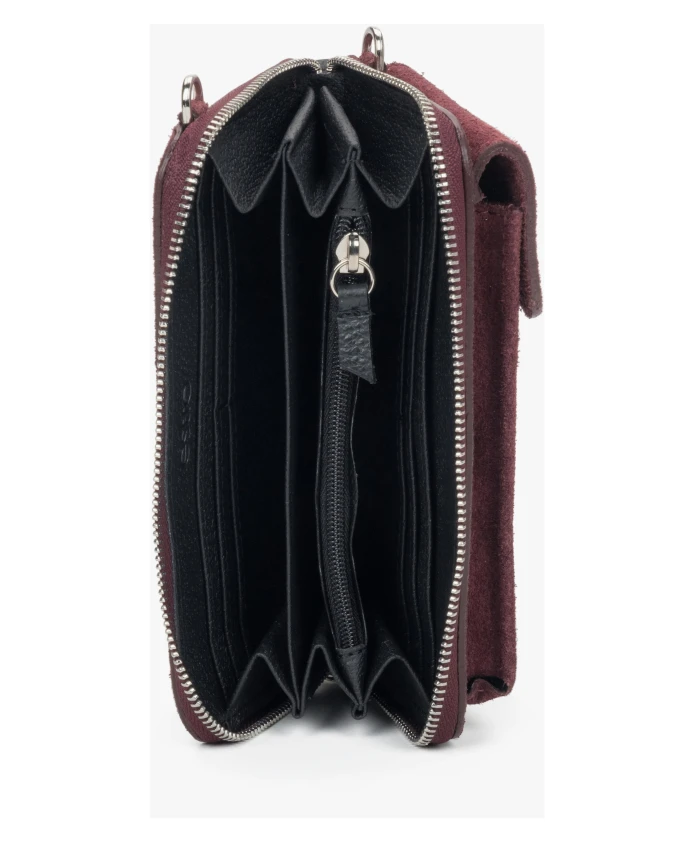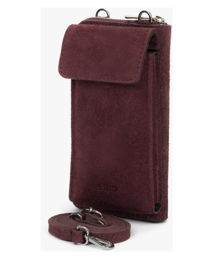 Сумка-клатч Estro Velour сочетает в себе высококачественную итальянскую замшу и внутреннюю отделку из натуральной кожи для изысканной организации вещей на каждый день. Компактная и очень функциональная, она надежно хранит необходимые вещи благодаря множеству карманов и застежке на кнопку и молнию. Ключевые особенности: Бордовый | Красный | Замша | Регулируемый, съемный ремешок | 11 внутренних карманов | 4 отделения | Слоты для карт | Карман для банкнот | Карман для монет | Карман для документов | Застежка на кнопку и молнию | Тисненый логотип | Компактный силуэт | Внутренняя отделка из натуральной кожи | Внешняя отделка из высококачественной итальянской замши | Размеры и посадка: Длина: 11 см | Высота: 19,5 см | Ширина: 4,5 см | Состав и уход: Высококачественная итальянская замша | Натуральная кожа