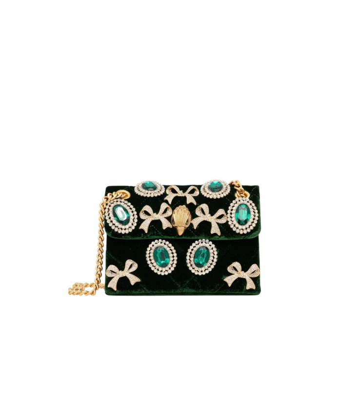 Мини-сумочка Kensington от Kurt Geiger - это компактная бархатная сумка через плечо, сочетающая в себе декоративные кристальные элементы и практичность в повседневной носке. Небольшой размер и магнитная застежка делают ее идеальной для вечерних выходов или для ношения в течение дня, освобождая руки. Основные характеристики: Зеленый | Темно-зеленый | Бархат | Плечевой ремень-цепочка (фиксированная длина) | Магнитная застежка | Внутренний карман для карт/подкладка | Подходит для телефонов до 7 дюймов | В комплекте защитный пылезащитный мешок | Стеганый бархатный клапан | Кристаллическая отделка | Деталь в виде головы орла из античной латуни | Размеры и посадка: Высота: 5,5 дюймов | Длина: 8 дюймов | Глубина: 2 дюйма | Один размер | Мини/компактный размер | Состав и уход: 100% полиэстер