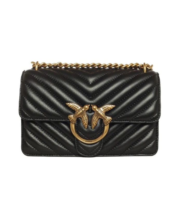 Компактная сумка через плечо PINKO Mini Love Bag One из стеганой кожи наппа сочетает в себе узор «шеврон» и фирменную пряжку Love Birds с ромбовидной огранкой, создавая изысканный повседневный образ. Основные характеристики: Черный | Кожа | Плечевой ремень из цепочки и кожи | Регулируемая кожаная накладка на плечо | Ремень можно сложить вдвое и носить на плече | Стеганый узор «шеврон» | Клапан с металлической пряжкой Love Birds с ромбовидной огранкой | Внутренняя отделка из искусственной замши | Разделитель на молнии посередине и кожаный внутренний карман | Размеры и посадка: Высота: 13 см | Ширина: 6 см | Длина: 21 см | Состав и уход: Овечья кожа (100%) | Хлопок (подкладка) (100%) | Не стирать. Не отбеливать. Не сушить в сушильной машине. Не гладить. Не подвергать химчистке.