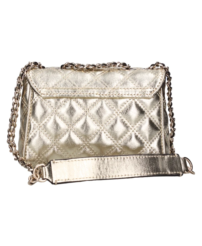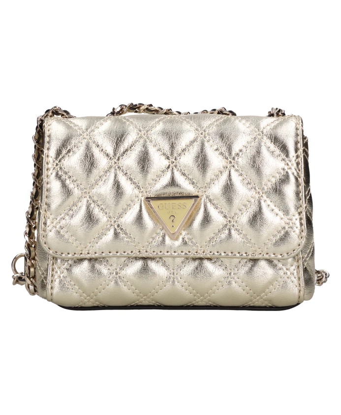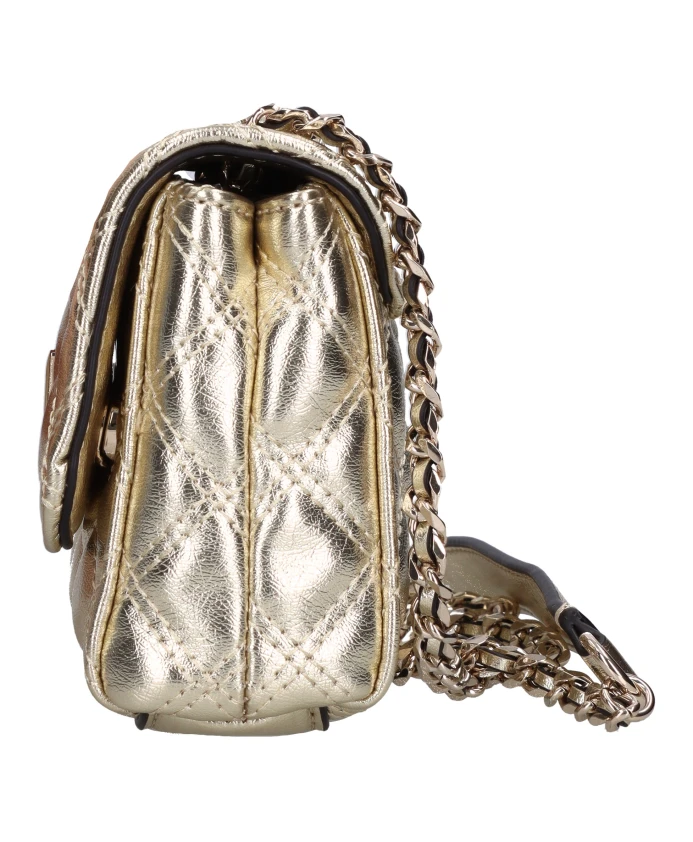Сумка Giully Quilted Mini Crossbody от Guess сочетает в себе компактный силуэт, стеганую ламинированную отделку и фурнитуру золотистого цвета. Плечевой ремень-цепочка и надежная застежка-клапан делают ее идеальным, тонким вариантом для комфортного ношения без помощи рук как днем, так и вечером. Основные характеристики: Золотистый цвет | Полиуретан | Легко моется | Одно отделение | Застежка-клапан на двух кнопках | Плечевой ремень из искусственной кожи и цепочки | Задний карман на молнии | Стеганая ламинированная внешняя поверхность | Металлический треугольный логотип | Фурнитура золотистого цвета | Откидной клапан | Размеры и посадка: Высота: 12 см | Ширина: 17 см | Глубина: 5,5 см | Состав и уход: 100% полиуретан | Протирать сухой тканью. Не стирать. Беречь от тепла и влаги.