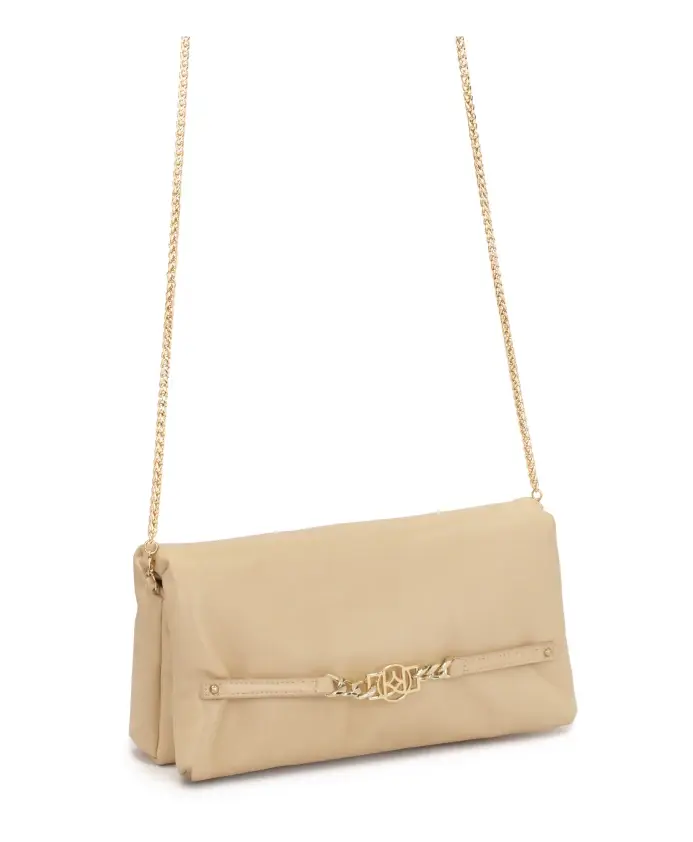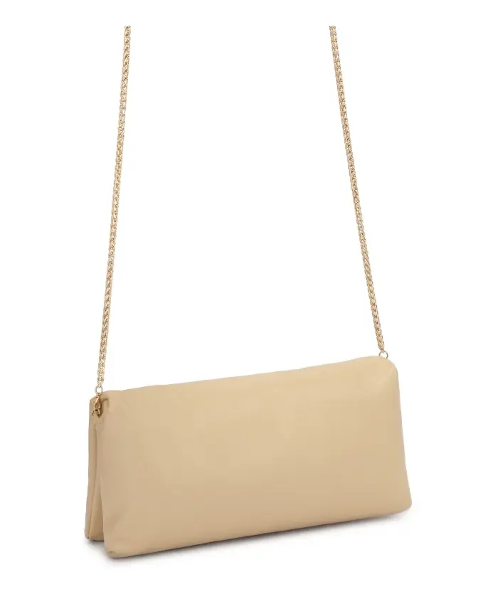 Изящная сумочка нежного бежевого оттенка, изготовленная из натуральной кожи с эффектом объемности, излучает элегантность и современность. Большой клапан украшен ремешком с металлической цепочкой, позволяющей удобно носить сумочку, просунув руку за него. В комплекте также идет съемная золотая цепочка, позволяющая носить сумочку на плече или через плечо, что делает ее универсальным аксессуаром. Бежевый цвет в сочетании с блестящими золотыми деталями создает гармоничный образ, который дополняет как классический, так и современный вечерний наряд. Описание товара: Сумочка имеет основное отделение, закрывающееся клапаном и магнитной застежкой. Внутри есть один открытый карман. Плечевая цепочка съемная. Ремешок на клапане позволяет просунуть руку за него для более удобной переноски.