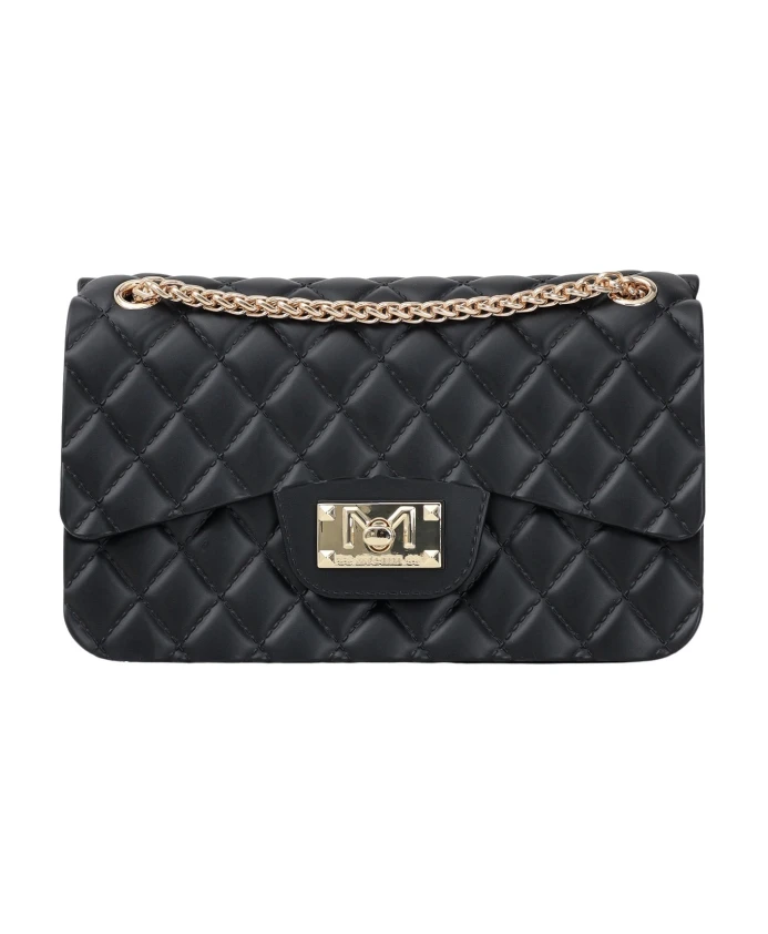 Подчеркните свой стиль с помощью этой черной женской сумки через плечо Marc Ellis Flat Falcon. Изготовленная из стеганой резины, эта элегантная сумка сочетает в себе изысканный дизайн и современный стиль. Компактный и структурированный силуэт имеет клапан с металлическим логотипом на передней части. Золотая цепочка добавляет роскоши и позволяет носить сумку удобно на плече или через плечо. Просторное внутреннее отделение идеально подходит для ваших необходимых вещей, что делает ее идеальной для любого случая, от дня до вечера. Универсальный и изысканный аксессуар, который обязательно привлечет внимание. Размеры: ширина 20,5 см, высота 12 см, глубина 6,5 см. Весенне-летний сезон. Черная женская сумка через плечо среднего размера 20,5x12x6,5 см Весна/Лето FLAT-FALCONBLLIGO.