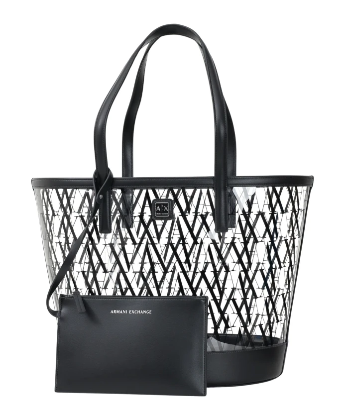 Подчеркните свой стиль с помощью этой современной и универсальной черной женской сумки-шоппера от Armani Exchange. Изготовленная из прозрачного материала с элегантным черным графическим узором, она имеет просторные ручки из искусственной кожи для удобного ношения на плече или в руке. Жесткое дно и черные детали придают ей структуру и прочность. Внутри вы найдете практичный съемный карман на молнии, идеально подходящий для безопасного хранения личных вещей. Логотип AX на передней части завершает изысканный дизайн. Идеально подходит для тех, кто ищет модный аксессуар, не жертвуя при этом функциональностью. Размеры: высота 29,5 см, ширина 40 см, глубина 20,5 см. Весенне-летний сезон. Черная женская сумка-шоппер 40x29,5x20,5 см Весна/Лето XW000922AF12147UC001.