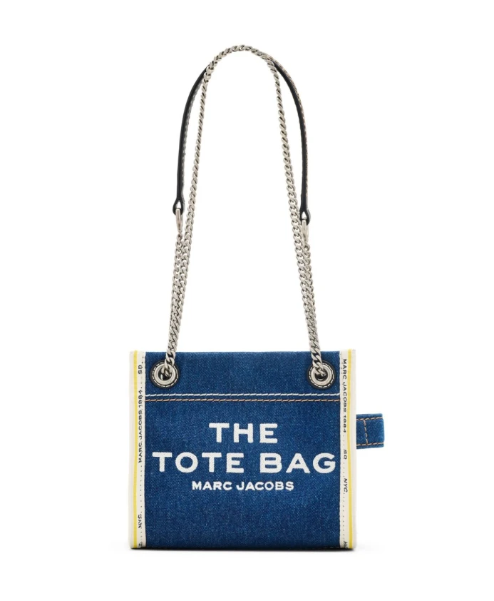 Сумка-Шоппер мини-джинсовая vivo с белыми логотипами Marc Jacobs, синий