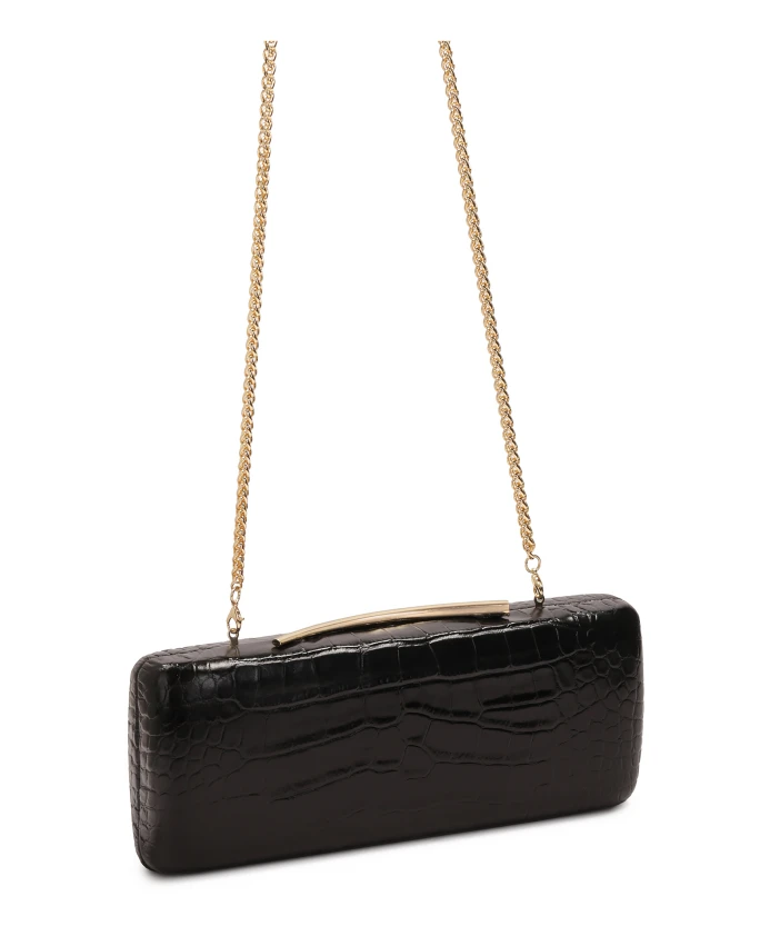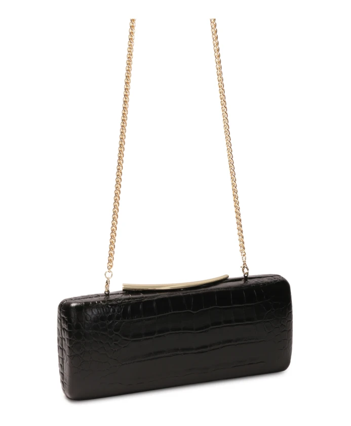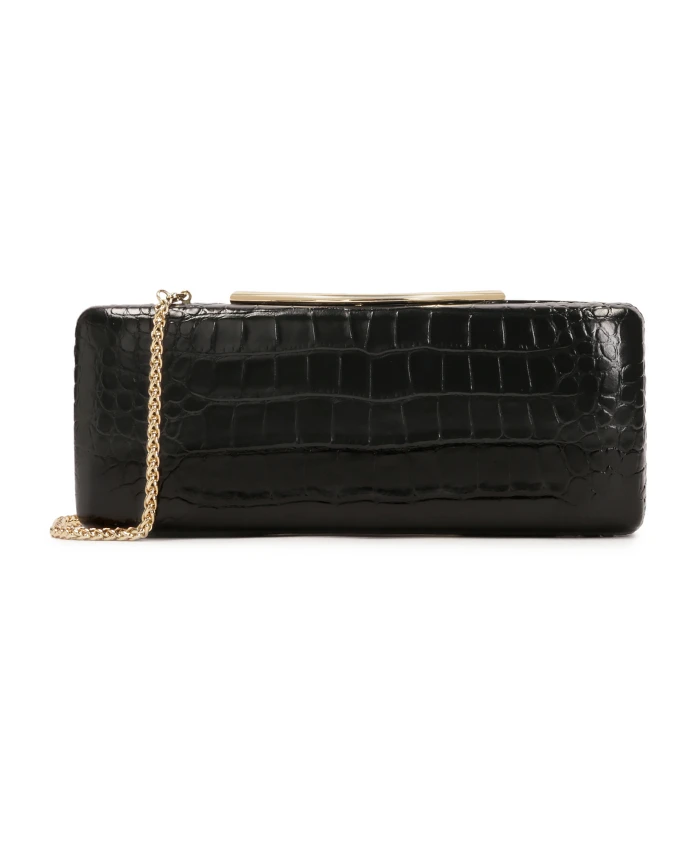 Эта вечерняя сумочка коробчатой формы - воплощение утонченной элегантности и вневременной классики. Жесткий каркас обтянут высококачественной натуральной кожей с тиснением под крокодила, которое тонко отражает свет, придавая сумочке изысканный характер. Минималистичная форма подчеркнута эффектной золотистой застежкой с ювелирной отделкой, которая служит одновременно функциональным и декоративным элементом дизайна. Золотая цепочка позволяет носить сумочку на плече или в руке, адаптируя ее к случаю. Это идеальное стильное дополнение к вечерним нарядам, от классических коктейльных платьев до современных образов с ноткой гламура. Детали изделия: Сумочка имеет одно отделение с застежкой-кнопкой. Сумочка оснащена съемной, нерегулируемой цепочкой.