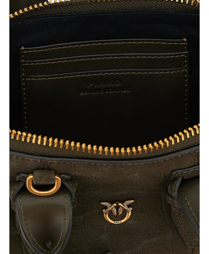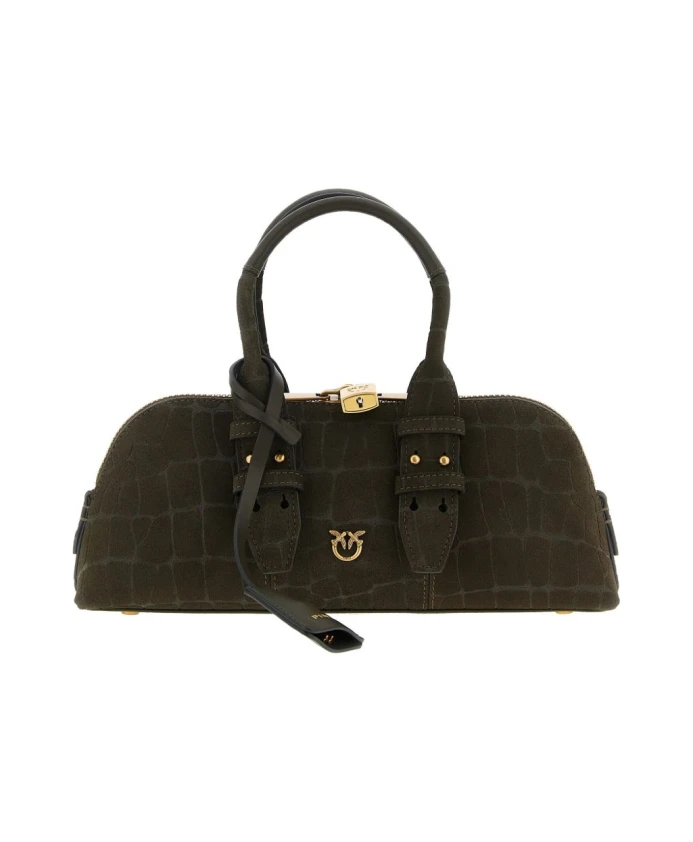 Сумка Pinko Escape Baguette - это компактная замшевая сумка-боулинг от Pinko, украшенная принтом под кокос и металлическим логотипом «Love Birds». Созданная как для повседневного, так и для вечернего использования, она сочетает в себе прочное основание и универсальные варианты ношения. Ключевые особенности: Зеленый | Зеленый цвет Fango | Замша | Двойные регулируемые ручки | Застежка-молния сверху с замком | Регулируемый и съемный плечевой ремень | Жесткое основание с металлическими ножками | Хлопковая подкладка | Силуэт «боулинг»/багет | Принт под кокос | Металлический логотип «Love Birds» спереди | Вышивка сзади | Съемный брелок | Размеры и посадка: Один размер | Состав и уход: 100% замша | 100% металл | 100% хлопок (подкладка)