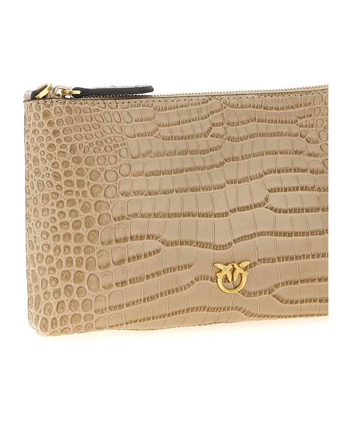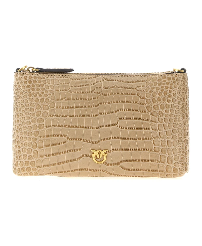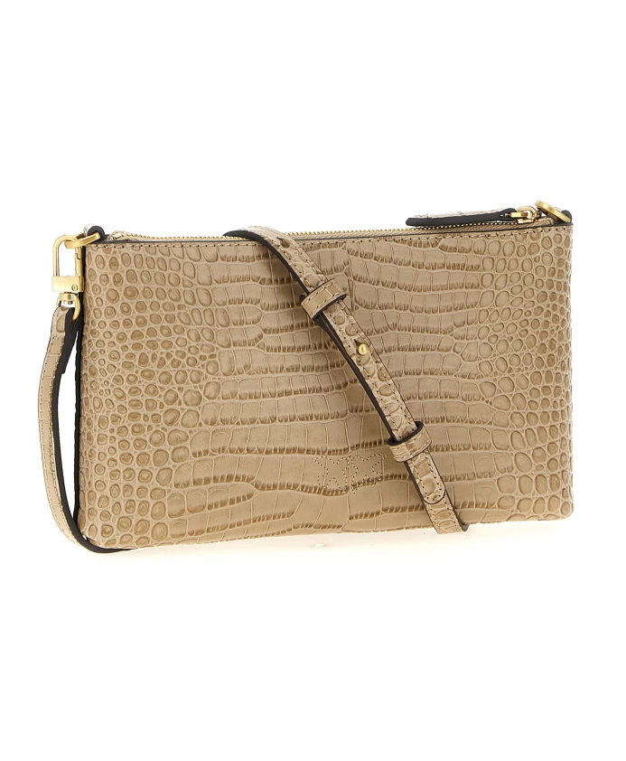 Плоская горизонтальная мини-сумка через плечо Pinko, бежевый