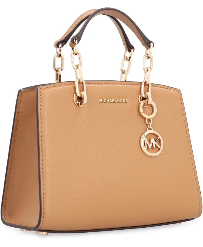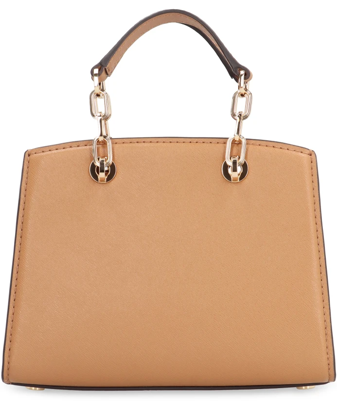 Мини-сумочка Michael Kors Cynthia из сафьяновой кожи - это компактная сумка-саквояж с цепочками-ручками и фурнитурой золотистого цвета. Ее структурированное внутреннее отделение, магнитная застежка и карман на молнии делают ее практичным выбором как для дневного, так и для вечернего образа. Ключевые особенности: Коричневый | Верблюжий | Сафьяновая кожа | Магнитная застежка | Внутренний карман на молнии | Съемный брелок с логотипом | Защитные металлические ножки на дне | Двойные кожаные и цепочные ручки | Металлическая фурнитура золотистого цвета | Подкладка с жаккардовым логотипом | Размеры и посадка: Ширина: 19 см | Высота: 15,5 см | Глубина: 6,5 см | Состав и уход: 100% коровья кожа