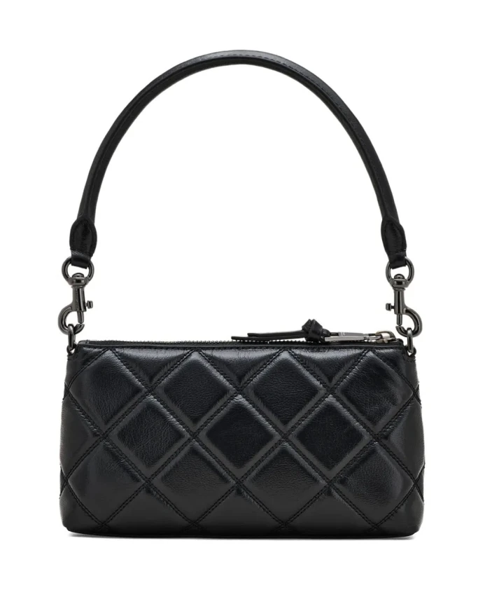 Сумка-трансформер Marc Jacobs The Quilted Snapshot Convertible Shoulder Bag - это компактная сумка из стеганой кожи, созданная для универсального повседневного использования. Благодаря трансформируемым ремням ее можно носить как через плечо, за верхнюю ручку или как клатч. Основные характеристики: Черный цвет | Телячья кожа | Съемный плечевой ремень-цепочка | Съемная верхняя ручка | Застежка-молния сверху | Внутренние отделения для карт | Трансформируемые варианты ношения (через плечо, на плече, клатч) | Стеганый внешний материал | Прямоугольный силуэт | Металлический логотип спереди | Размеры и посадка: Ширина: 23 см | Высота: 13 см | Глубина: 4 см | Состав и уход: 100% телячья кожа