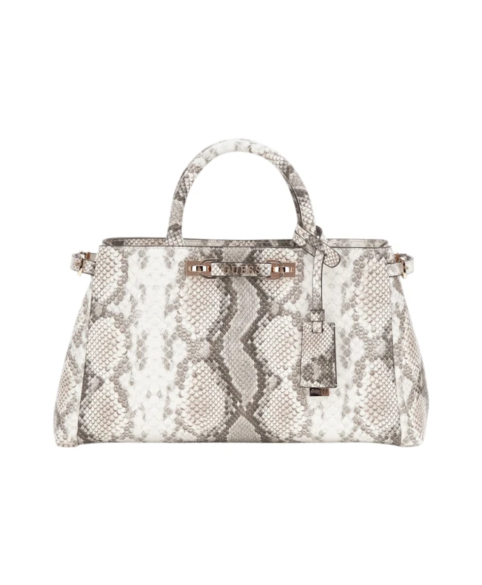 Сумка Guess Lefia Luxury Satchel сочетает в себе отделку под змеиную кожу с универсальной ручкой для переноски и съемным плечевым ремнем, предлагая простой вариант для организации вещей как днем, так и вечером. Ключевые характеристики: Бежевый | Натуральный | Искусственная кожа (ПУ) | Ручка для переноски | Съемный регулируемый плечевой ремень | Вместительная подкладка | Принт под змеиную кожу | Контрастная отделка | Блестящая фурнитура золотистого цвета | Силуэт сумки | Размеры и посадка: Длина: 28 см | Ширина: 10 см | Высота: 19 см | Высота ручки: 9 см | Высота съемного ремня: 58 см | Состав и уход: Искусственная кожа (ПУ под змеиную кожу) | Отделка: Гладкая ПУ | Фурнитура: Металл