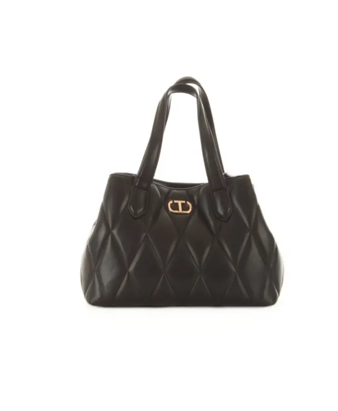 Сумка-шоппер Twinset Quilted из стеганой искусственной кожи предназначена для повседневного использования. Мягкая подкладка и съемный плечевой ремень делают ее достаточно универсальной, чтобы носить ее в руке, на плече или через плечо. Основные характеристики: Черный | Полиуретан | Двойные ручки | Съемный плечевой ремень | Магнитная застежка | Застежка-клипса | Стеганый узор | Мягкая подкладка | Металлический овальный логотип T | Боковые части с возможностью складывания/раскладывания | Размеры: 28 x 20 x 14 см | Состав и уход: 100% полиуретан (внешний слой) | 100% полиэстер (подкладка) | Не стирать. Не отбеливать. Не сушить в сушильной машине. Не гладить. Не подвергать химчистке.