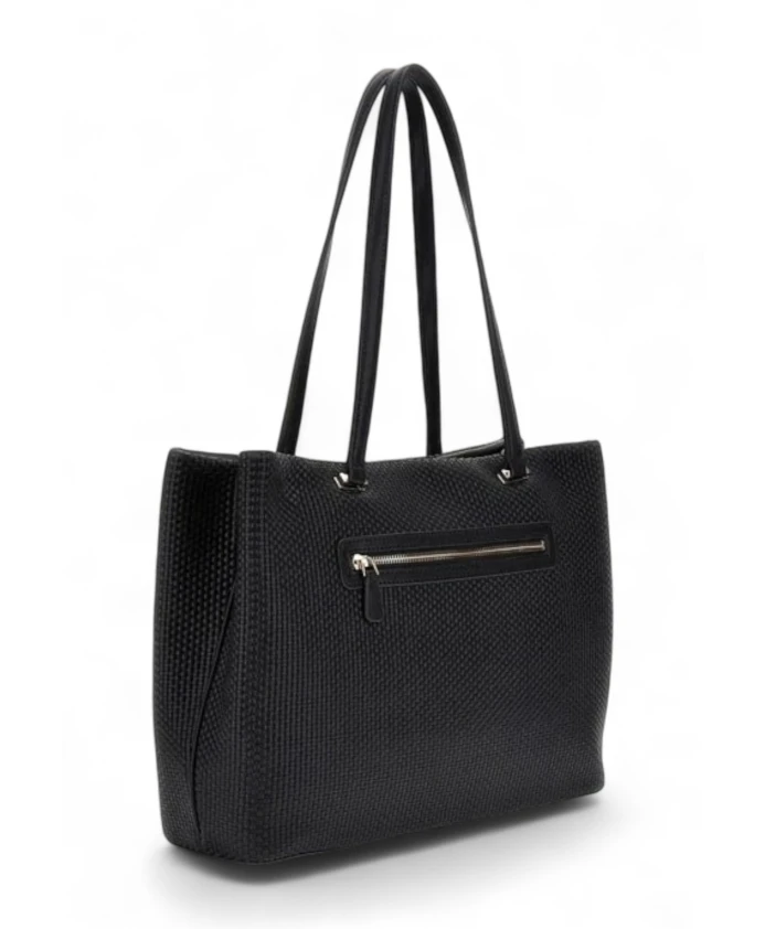Сумка-шоппер Guess Phaedra Woven Shopper сочетает в себе имитацию плетеной искусственной кожи и компактный силуэт для повседневного использования. Дизайн ориентирован на удобство организации вещей и надежную застежку-молнию. Ключевые особенности: Черный | Черный | Экопелле | Застежка-молния | Две ручки (около 45 см) | Внешний карман на молнии | Без плечевого ремня | Плетеная текстура | Металлический треугольный логотип спереди | Фурнитура золотистого цвета | Размеры и посадка: Высота: 28 см | Ширина: 38 см | Глубина: 11 см | Состав и уход: 100% полиуретан | Не стирать. Хранить в прилагаемом пылезащитном мешке и следовать инструкциям по уходу на этикетке.