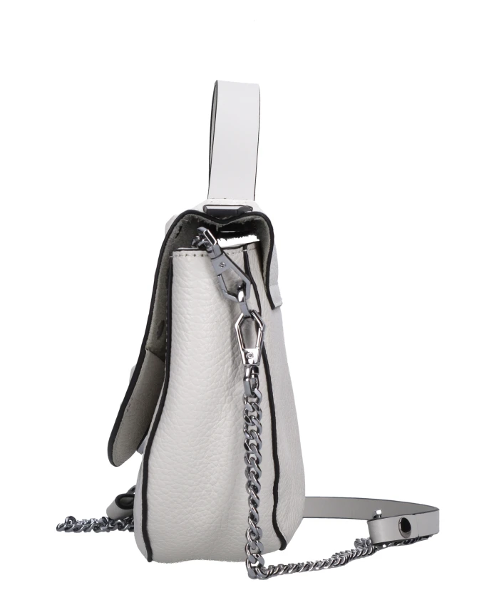 Сумка GLORIABREZZA из кожи сочетает в себе текстуру кованой кожи и серые декоративные заклепки, создавая компактную и стильную сумку через плечо. Съемный внутренний карман и двойной кожаный ремешок с цепочкой делают ее достаточно универсальной для использования как днем, так и вечером. Ключевые особенности: Серый | Кожа | Одно отделение | Застежка-клапан на кнопке | Съемный внутренний карман | Съемный кожаный ремешок с серебристой цепочкой | Поставляется в прозрачном чехле | Кованая отделка | Серые заклепки | Силуэт с клапаном | Детали в виде серебристой цепочки | Размеры и посадка: Высота: 17 см | Ширина: 20 см | Глубина: 6 см | Состав и уход: Кожа