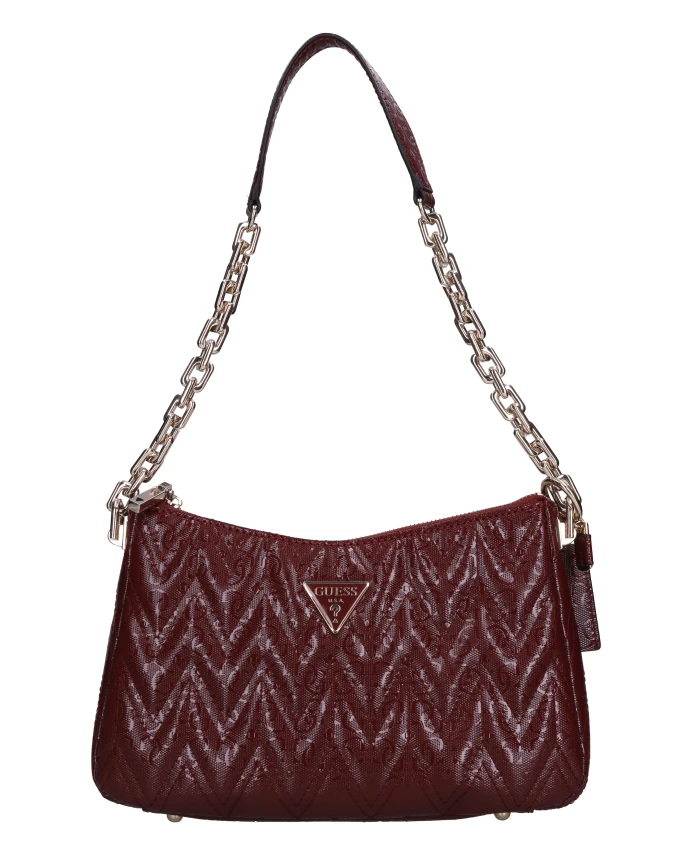 Сумка Guess из искусственной кожи сочетает в себе компактный повседневный силуэт с ручкой-цепочкой золотистого цвета и съемным ремешком для универсального ношения как днем, так и вечером. Ключевые особенности: Красный | Бордовый | Искусственная кожа | 1 отделение | Застежка-молния | Регулируемый и съемный плечевой ремень из искусственной кожи | Ручка из искусственной кожи с цепочкой золотистого цвета | Поставляется в прозрачном пыльнике | Деталь в виде цепочки золотистого цвета на ручке | Съемный брелок | Компактный прямоугольный силуэт | Размеры и посадка: Высота: 17 см | Ширина: 26 см | Глубина: 5 см | Состав и уход: Искусственная кожа