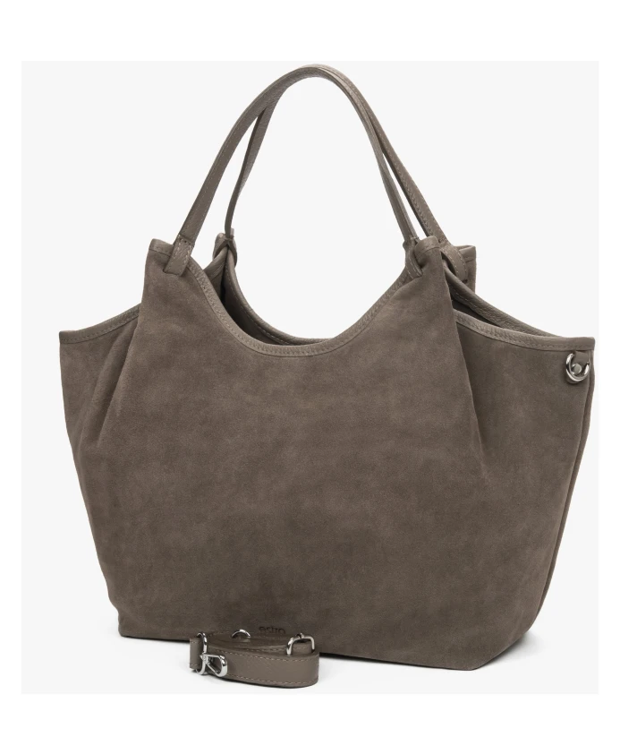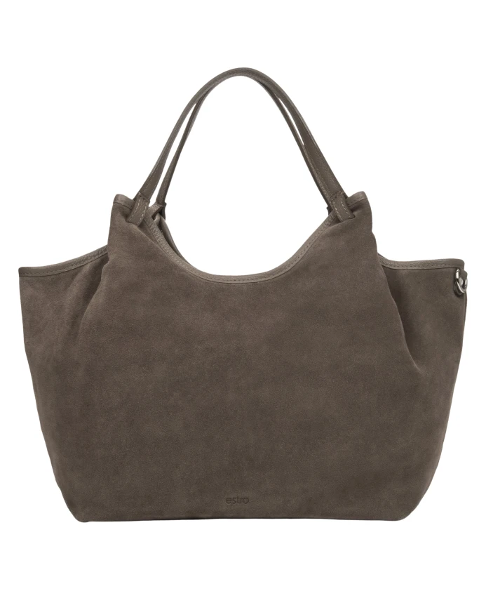 Сумка-шоппер Estro сочетает в себе высококачественную итальянскую замшу и практичные повседневные функции. Она имеет мягкую текстильную внутреннюю отделку и множество вариантов ношения для работы и выходных. Ключевые особенности: Темно-серый | Замша | Регулируемый плечевой ремень | Усиленные ручки | Застежка-молния | Множество карманов | Силуэт шоппера | Мягкая текстильная подкладка | Одно основное отделение | Размеры и посадка: Длина: 47,5 см | Высота: 26 см | Ширина: 13 см | Высота ручки: 18 см | Регулируемая длина ремня: до 117 см | Состав и уход: 100% высококачественная итальянская замша | Текстильная подкладка