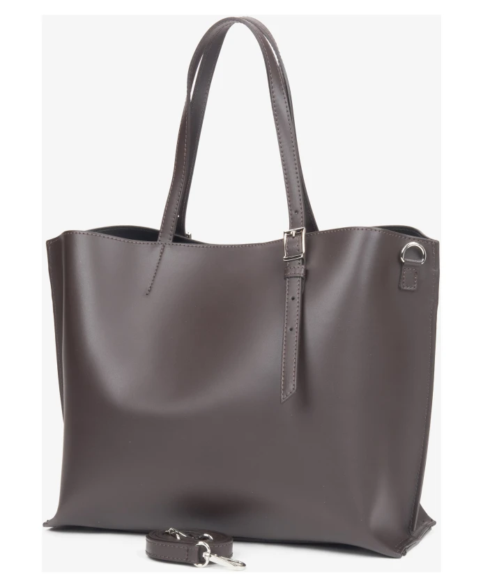 Сумка-шоппер Estro темно-коричневого цвета - это универсальный аксессуар, изготовленный из высококачественной итальянской кожи, идеально подходящий для повседневного использования благодаря вместительному дизайну и элегантному внешнему виду. Основные характеристики: Темно-коричневый цвет | Высококачественная итальянская натуральная кожа | Регулируемые плечевые ремни | Несколько отделений | Изысканный темно-коричневый оттенок | Застежка на кнопку и молнию | Размеры: 35 см x 28 см x 10 см | Разнообразные варианты ношения | Состав и уход: 100% высококачественная итальянская кожа | Протирать влажной тканью