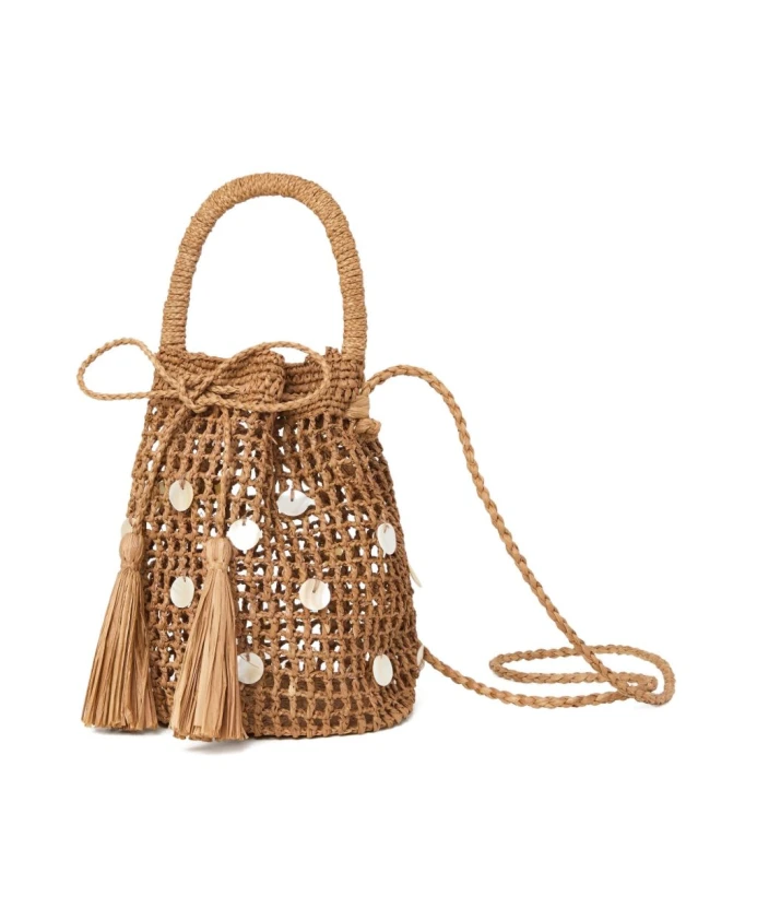 Сумка-ведро Precious Moments от Alanui сочетает в себе ручную работу с рафией, плетеный плечевой ремень и кисточку, создавая непринужденный образ для теплой погоды и стильные наряды для выходных. Ключевые особенности: Коричневый | Светло-коричневый | Рафия | Ручки | Плетеный плечевой ремень | Конструкция из рафии | Детали с кисточкой | Форма ведра | Размеры и посадка: Один размер | Состав и уход: 100% рафия | Чистить пятна мягкой тканью и мягким моющим средством; не замачивать. Сушить естественным образом и хранить в пылезащитном мешке. Избегать длительного воздействия влаги и прямых солнечных лучей.